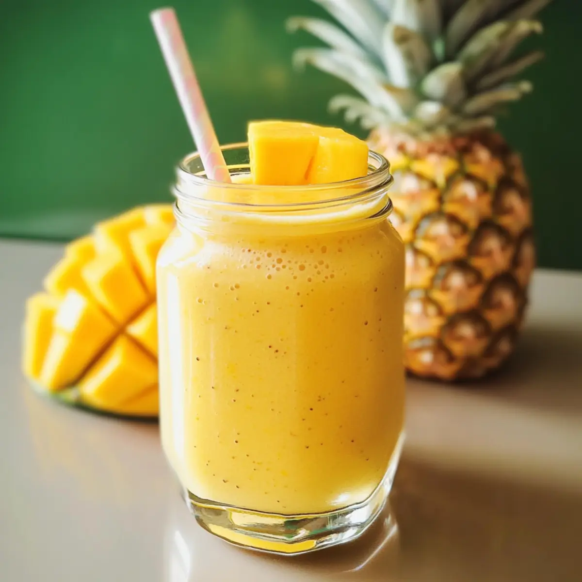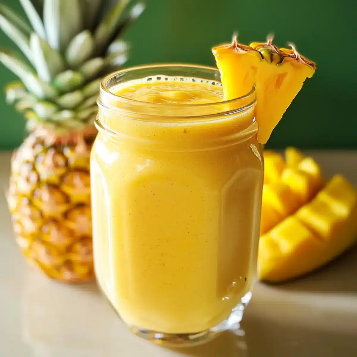 • Ananas – 200 g frische oder gefrorene Ananasstücke; die Hauptquelle für Geschmack und Süße. Substitution: Mango sorgt für einen ähnlichen tropischen Geschmack.