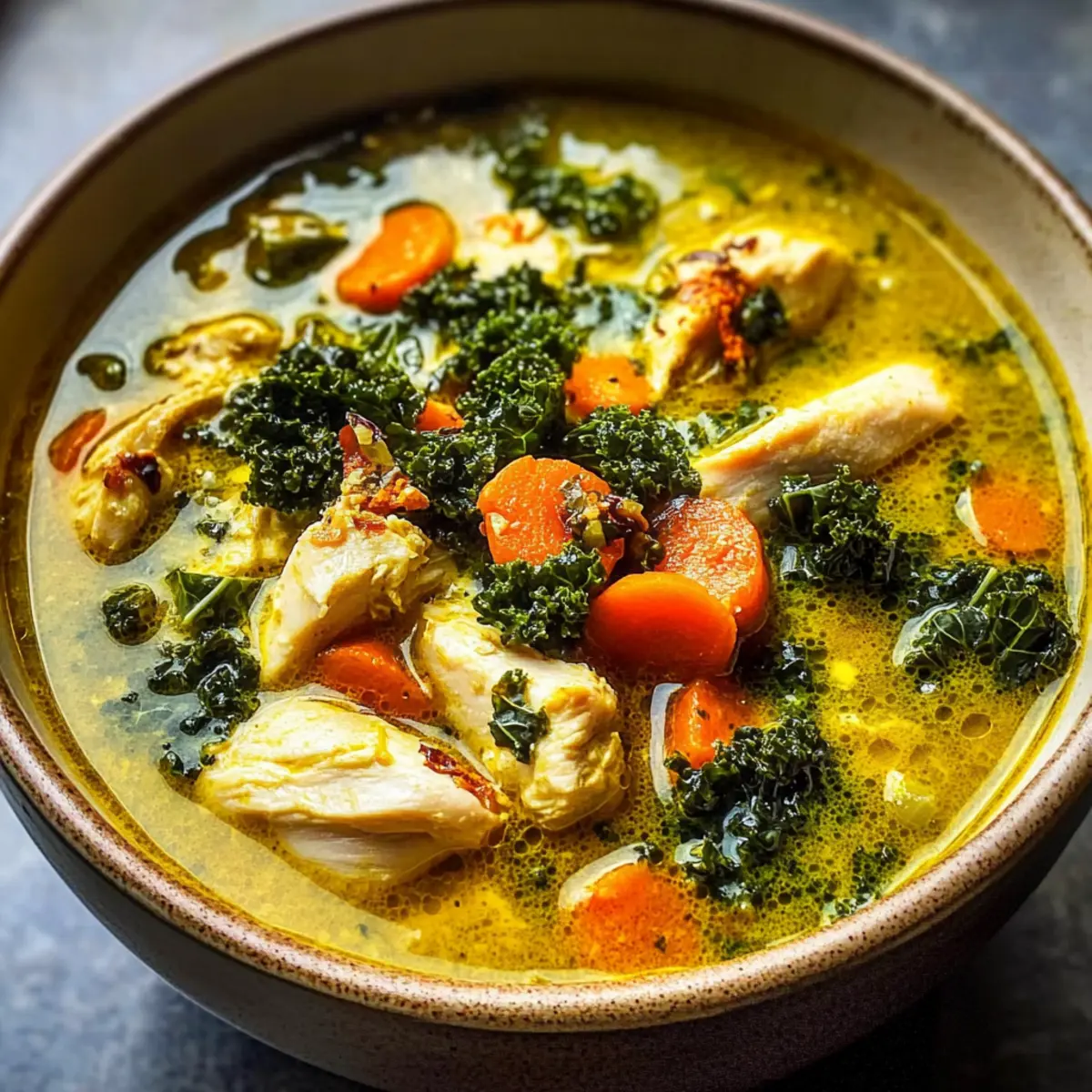 Gesundheitsfördernd: Diese Anti-Entzündliche Kurkuma-Hühnchensuppe bietet nicht nur köstlichen Geschmack, sondern auch zahlreiche gesundheitliche Vorteile! Einfache Zubereitung: In nur 45 Minuten hast du ein vollwertiges Gericht auf dem Tisch, was perfekt für hektische Abende ist. Vielseitig: Du kannst frisches Gemüse nach Wahl einsetzen und sogar Alternativen wie Tofu für eine vegetarische Variante ausprobieren. Reichhaltige Aromen: Mit der Kombination aus Gewürzen und frischen Zutaten erhältst du ein Fest der Aromen in jedem Löffel! Wie wäre es dazu mit einer Beilage von Zucchini grillen Rezept? Die perfekte Ergänzung zu dieser wohltuenden Suppe!