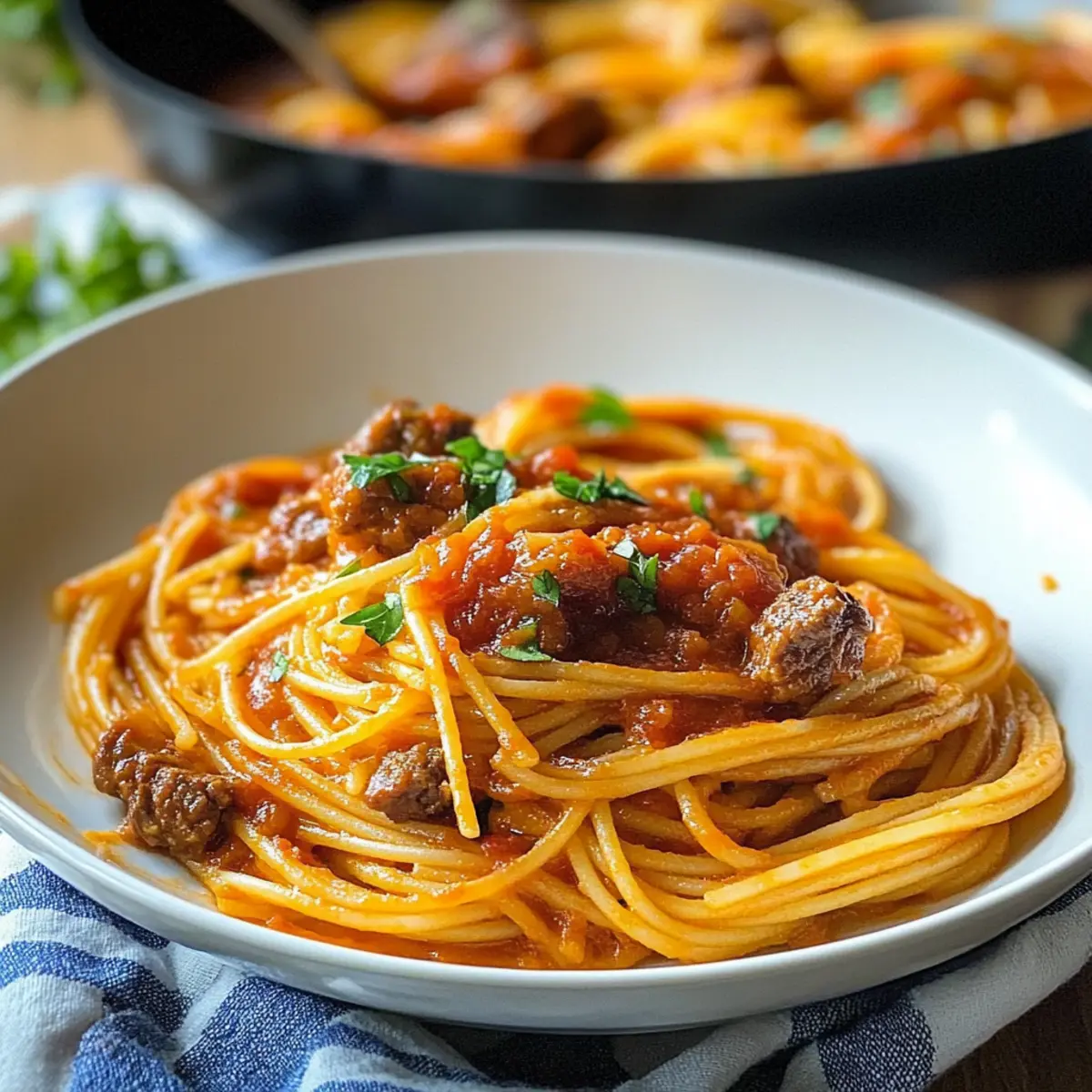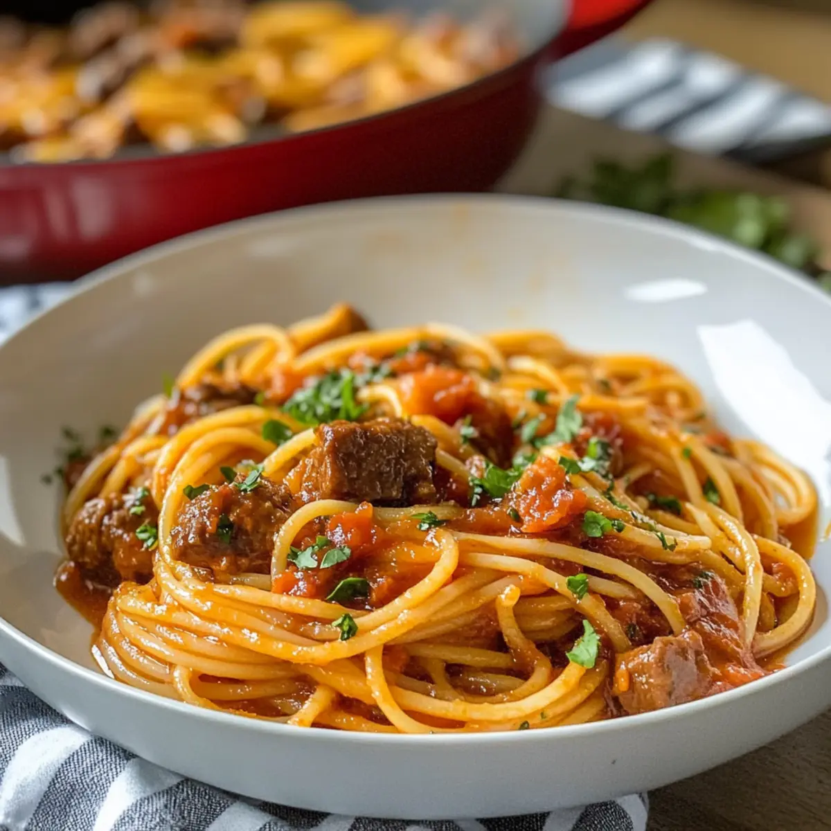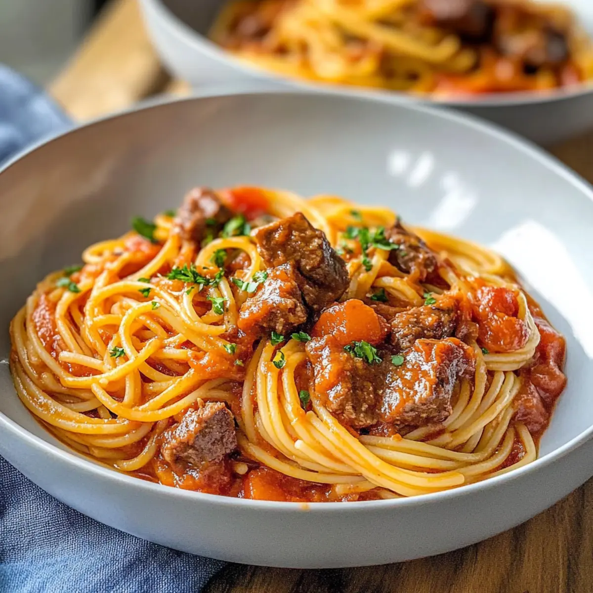 Aromatische Tomatenpasta mit zartem Rindfleisch