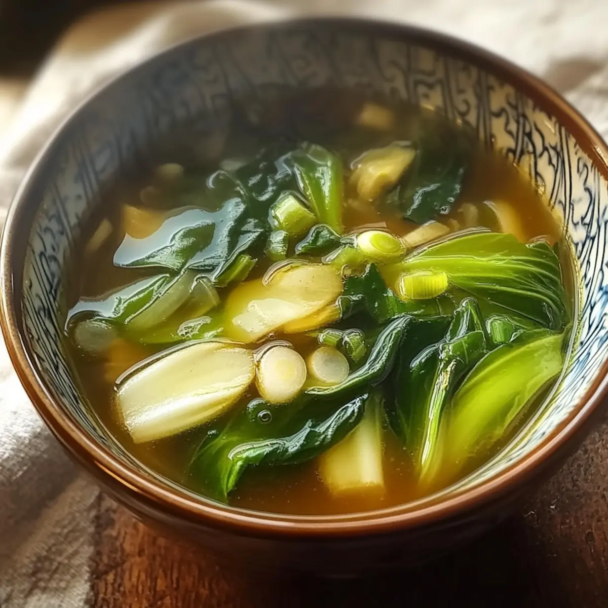 Bok Choy Suppe mit Knoblauch und Ingwer genießen