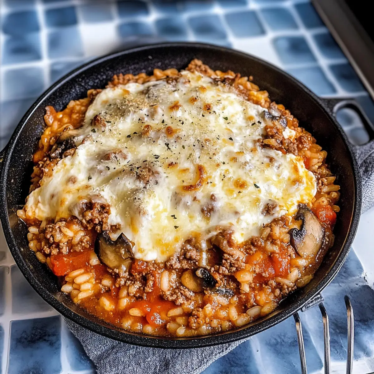 Herzhafter Geschmack: Die Kombination aus würzigem Rinderhack, cremigem Risotto und geschmolzener Mozzarella zaubert ein Geschmackserlebnis, das dich begeistern wird.