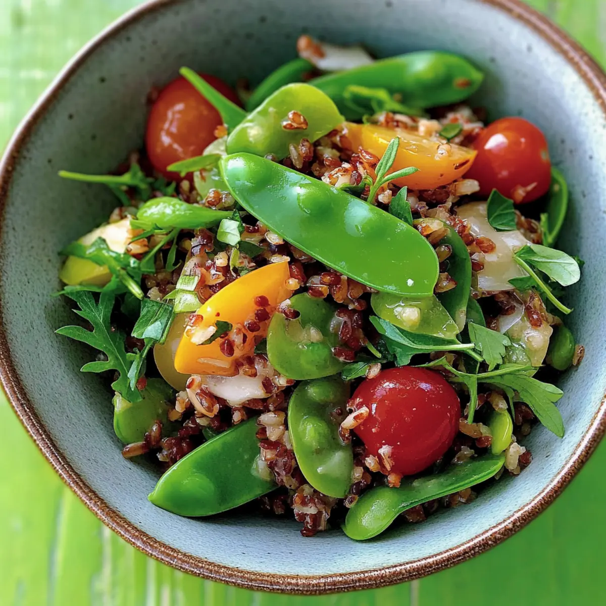 Entdecke die köstlichen Zutaten für deinen leckeren Camargue-Reissalat mit Zuckerschoten!