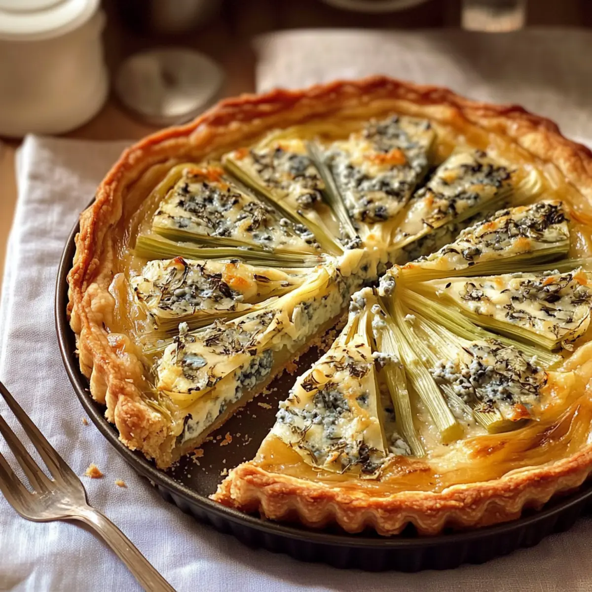 Chicorée-Kuchen mit Blauschimmelkäse und Kräutern
