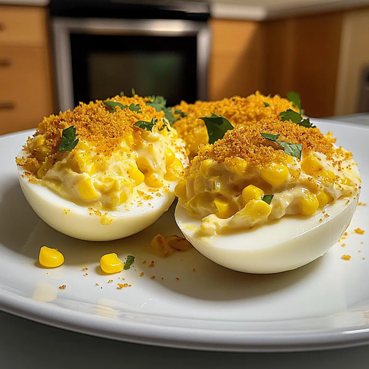 Mexikanischer Straßenmais gefüllte Eier genießen