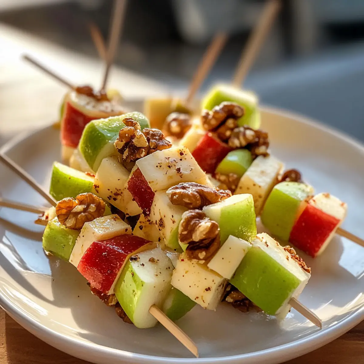 Apfel Camembert Walnuss Spieße: Schnelle Snack-Idee