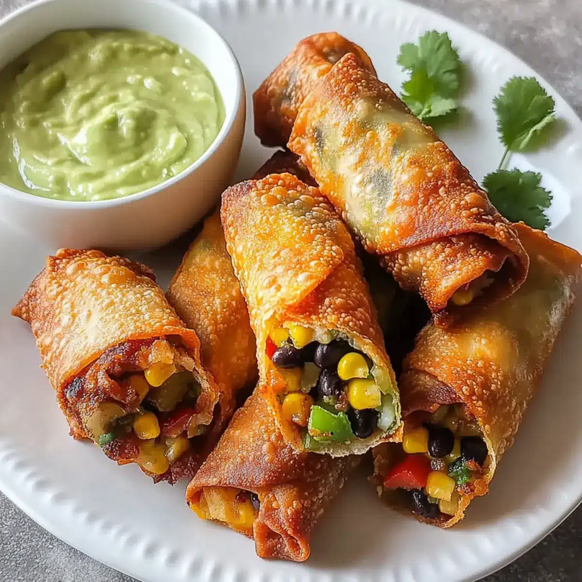 Knusprige Gemüse-Frühlingsrollen mit Avocado-Dip