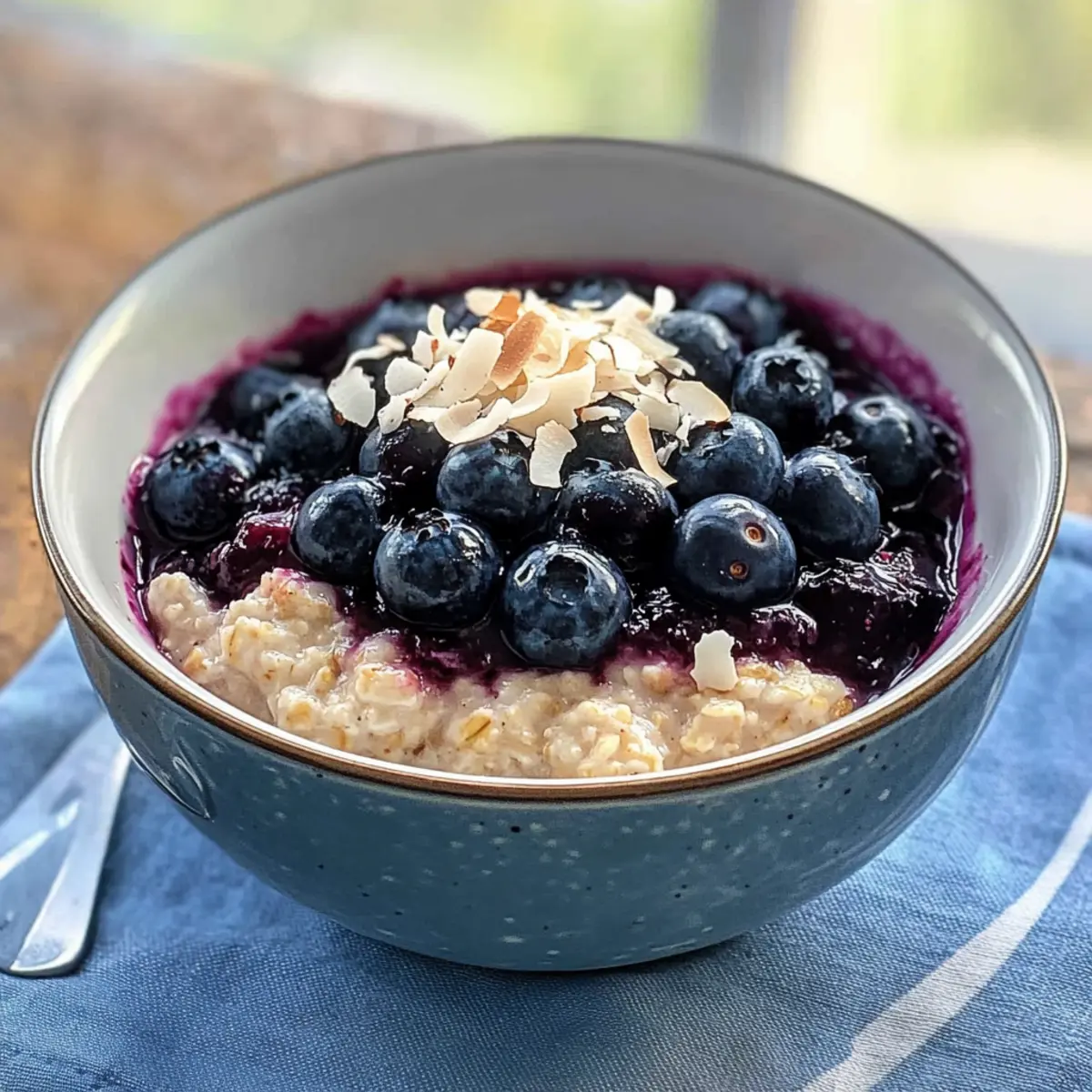 Kokosnuss-Haferbrei mit Heidelbeerenkompott genießen