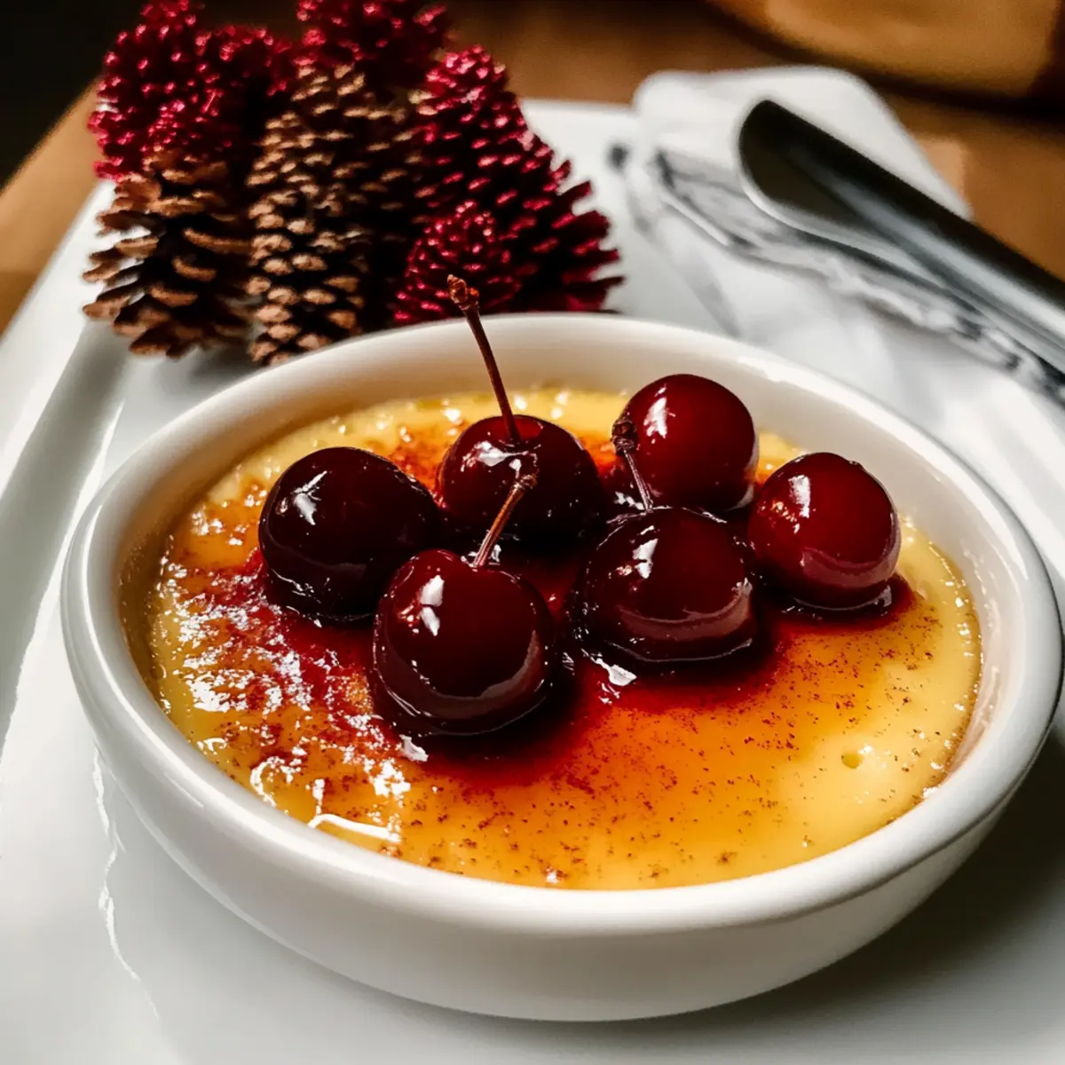 Weihnachtliche Crème Brûlée mit Gewürzkirschen