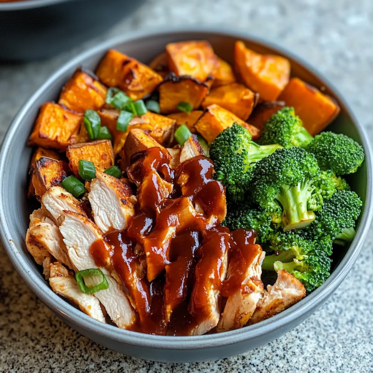 Einfache BBQ-Hähnchen- und Süßkartoffel-Schüsseln