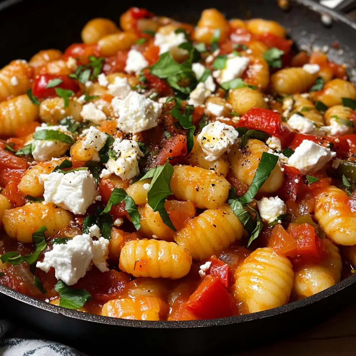 Gnocchi Gemüse Pfanne mit Feta für schnelle Genüsse