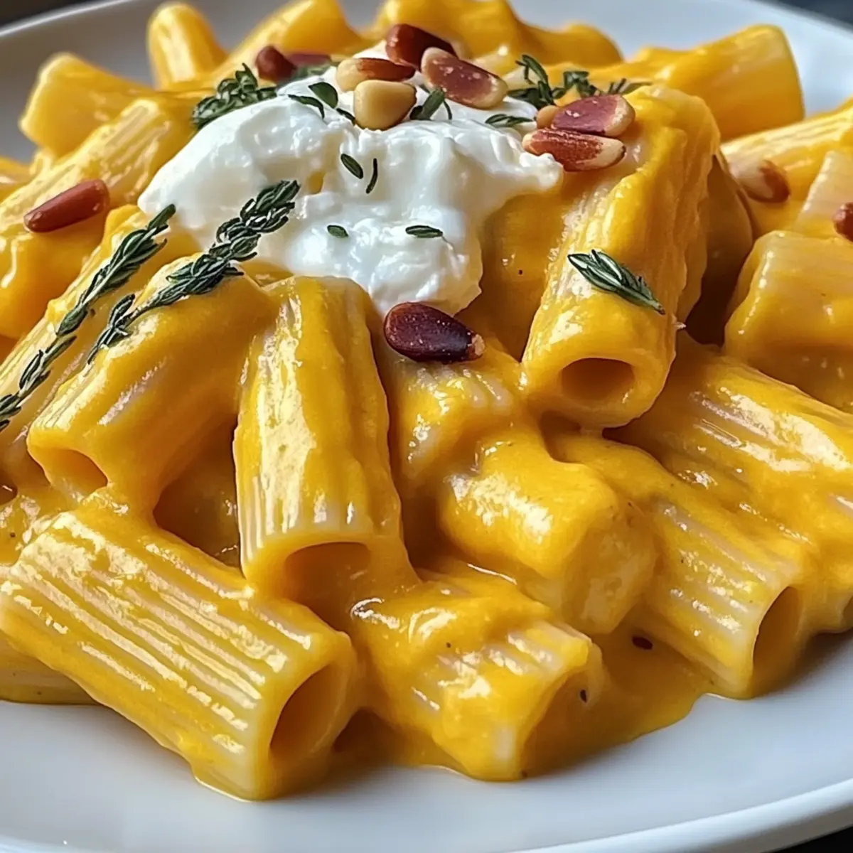 Pasta in Kürbissauce mit Burrata für Herbstgenuss