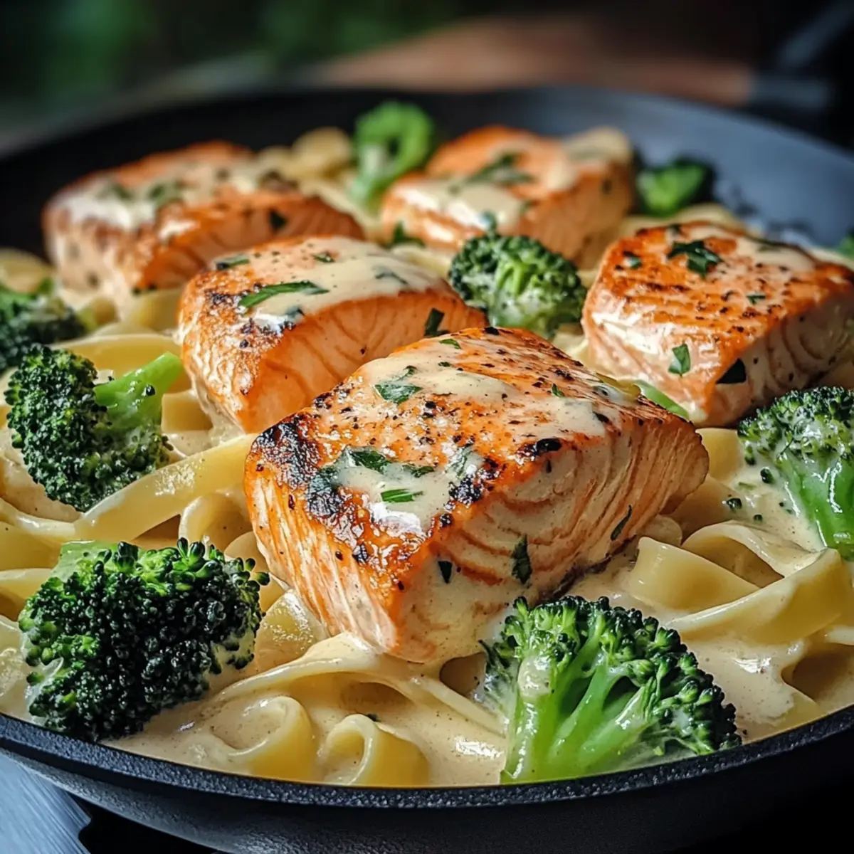 Gebratener Lachs und Brokkoli Alfredo für Gourmets