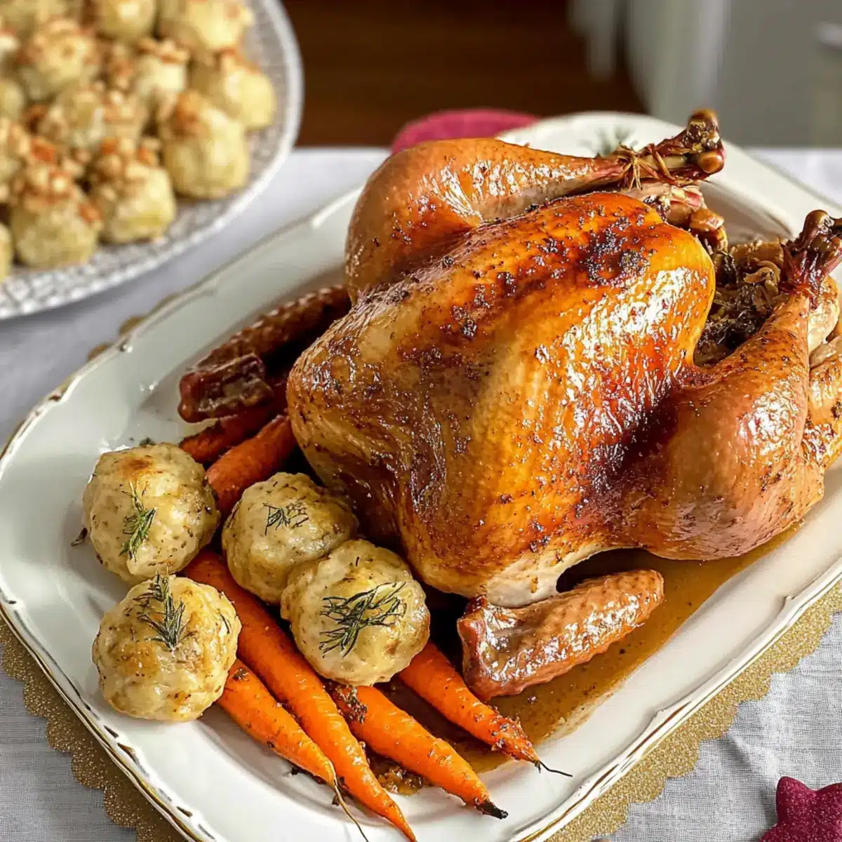 Truthahn mit Maroni-Serviettenknödel und Karotten genießen