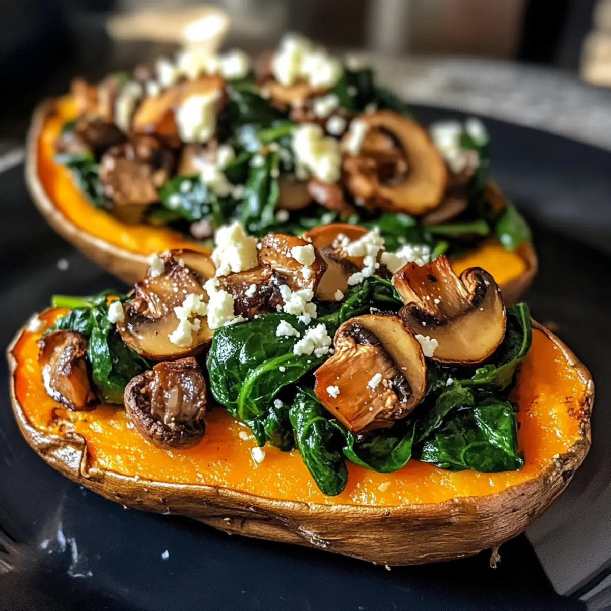 Gefüllte Süßkartoffeln mit Pilzen und Spinat schnell zubereiten