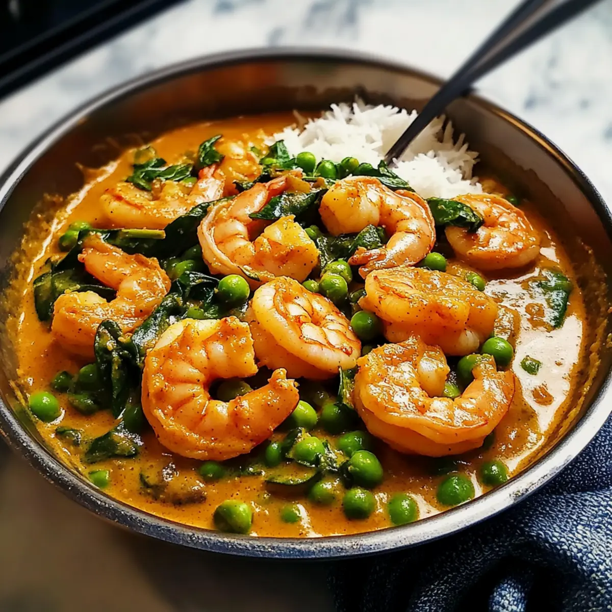 Kokosnuss-Curry-Garnelen mit Erbsen Rezept schnell und lecker
