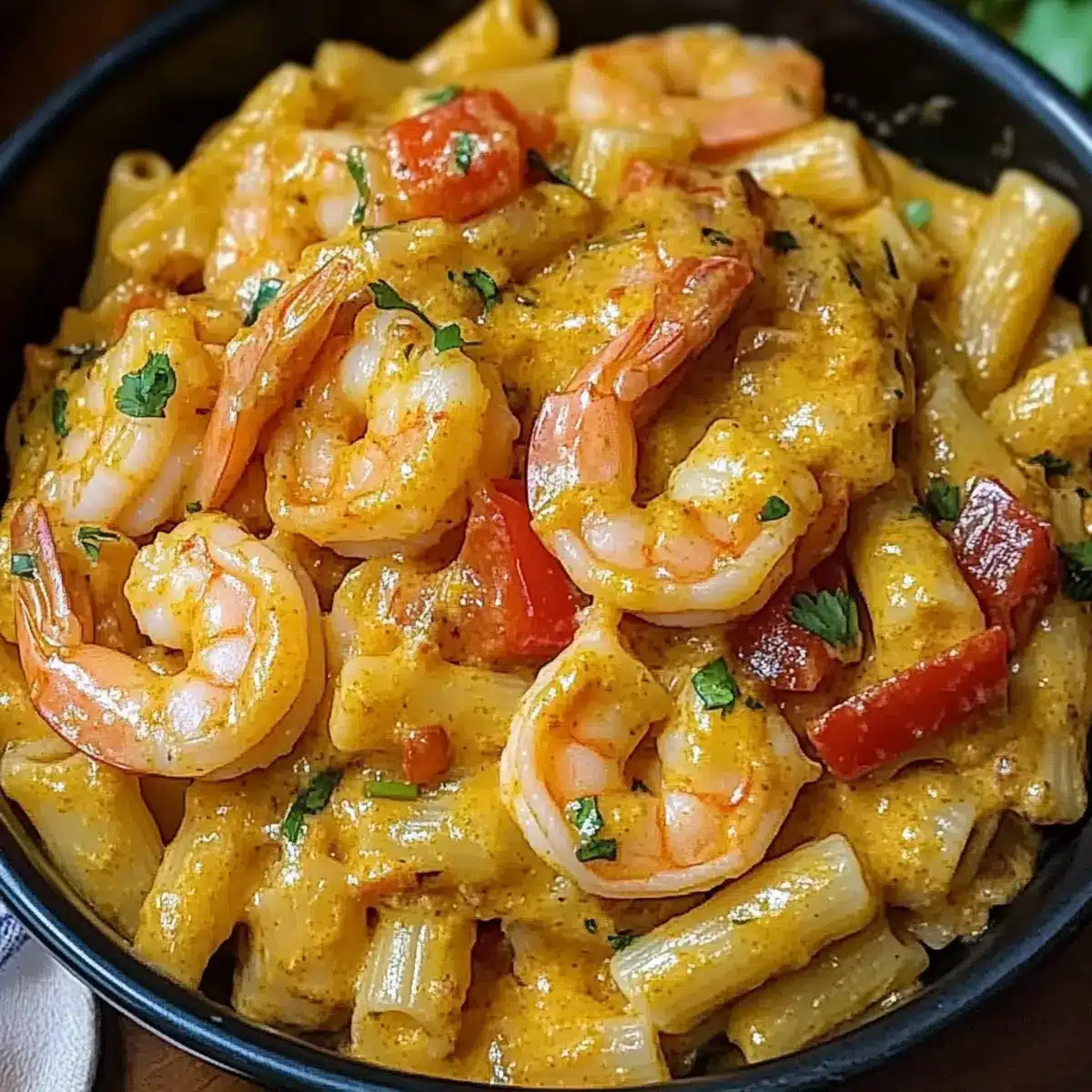 Cremige jamaikanische Garnelen Rasta Pasta für Zuhause