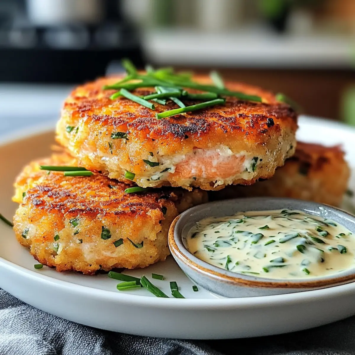 Leckere Lachsfrikadellen mit Schnittlauch Sauce