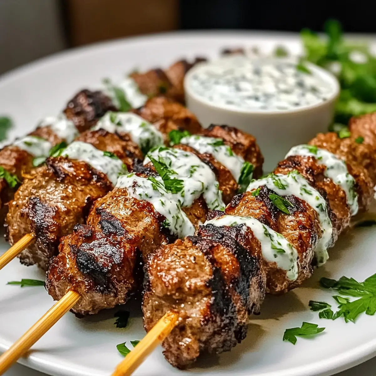 Saftige Hackfleischspieße mit Kräuterjoghurt genießen