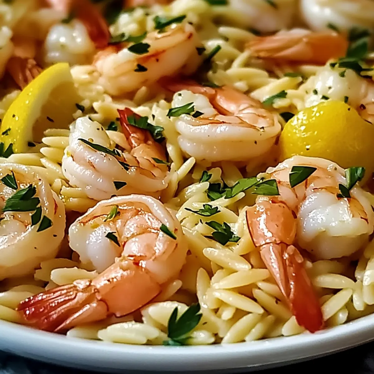 Zitronige Knoblauch-Orzo mit Garnelen ganz schnell