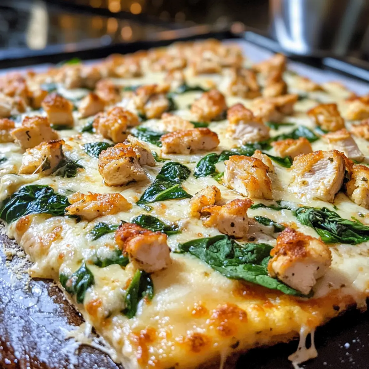 Hühnchen Alfredo Pizza mit niedrigem Kohlenhydrat Blumenkohlboden