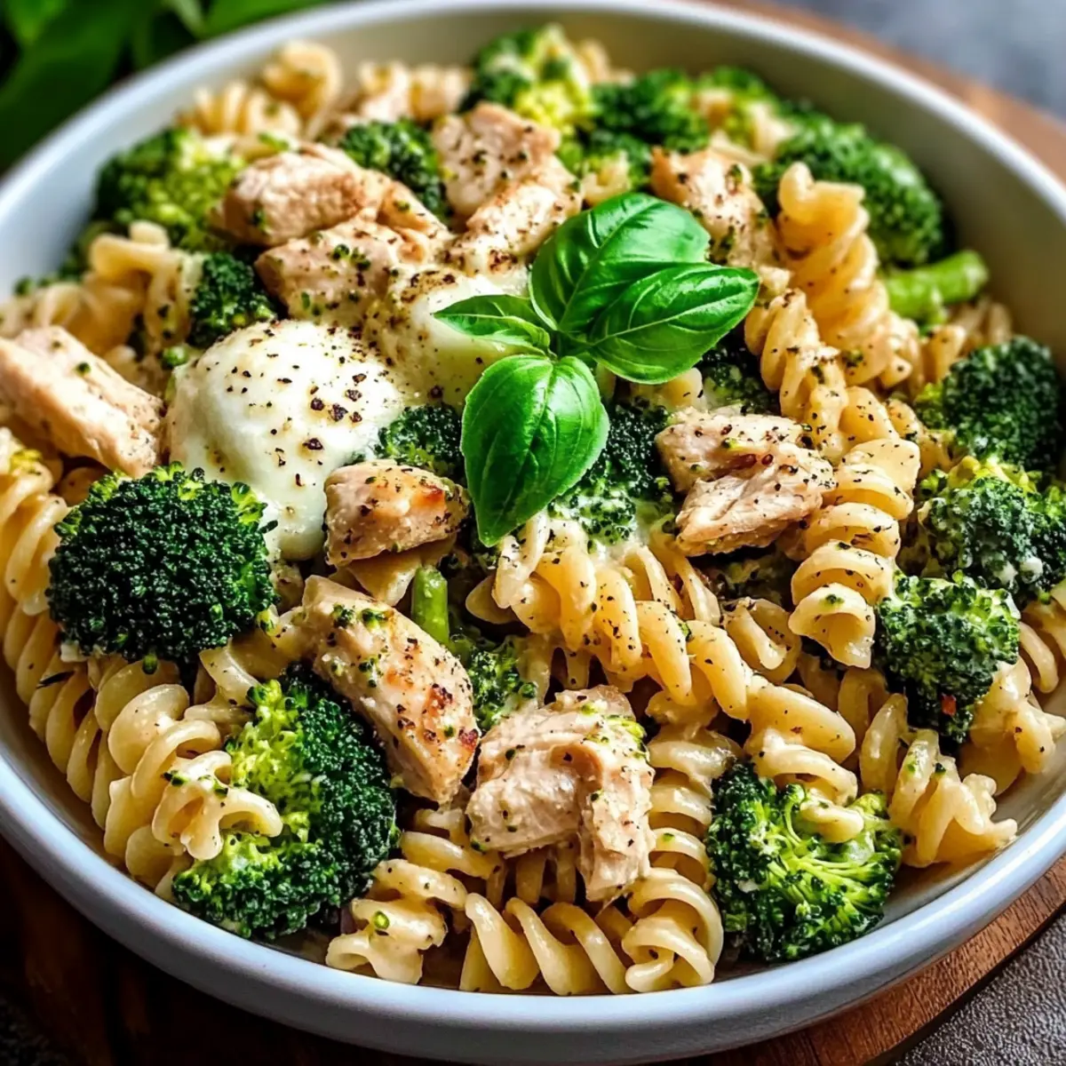 Hoher Protein Rösthühnchen Brokkoli Pasta für Eilige