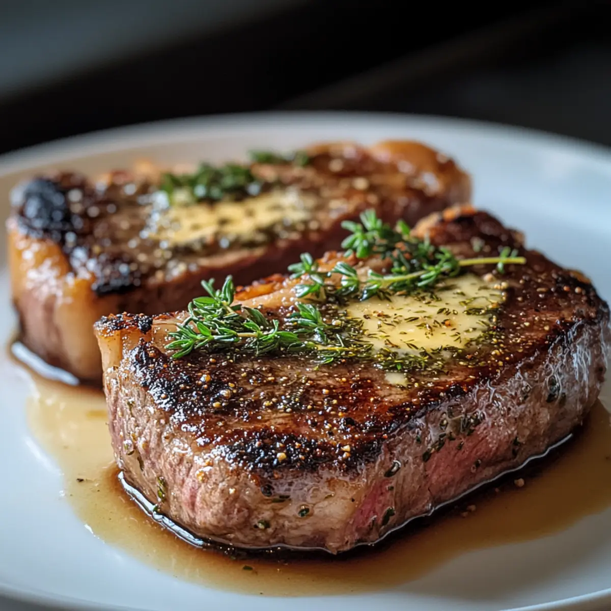 In Butter gebratenes Steak mit Thymian Perfekt Zubereitet