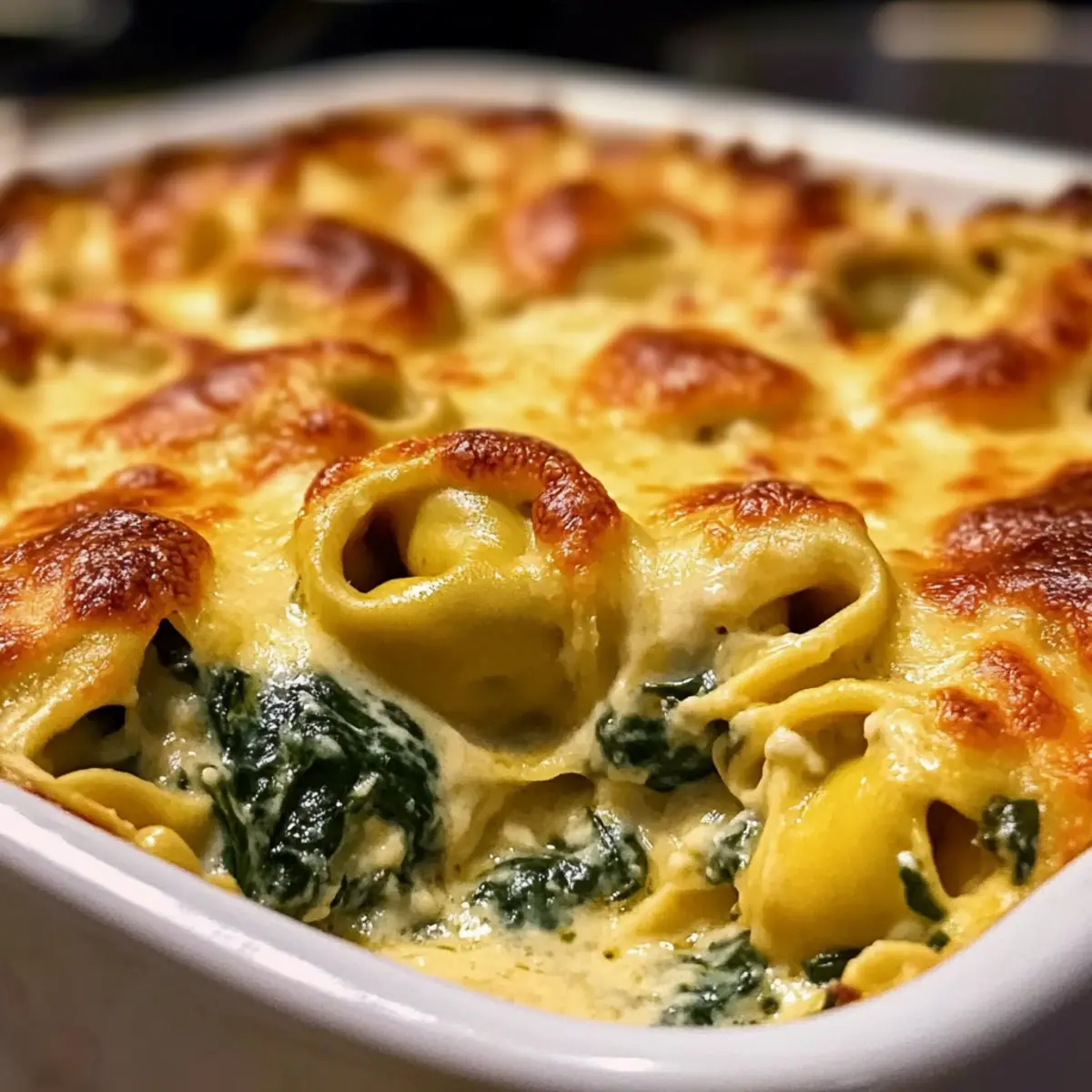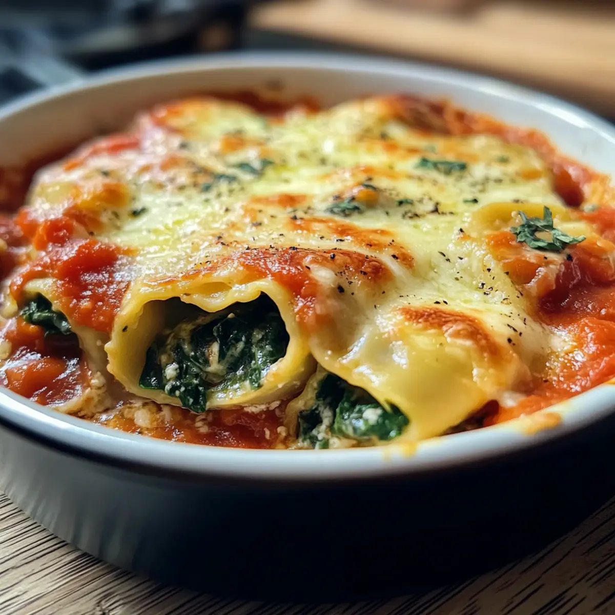Maultaschen-Auflauf mit Spinat und Tomatensoße