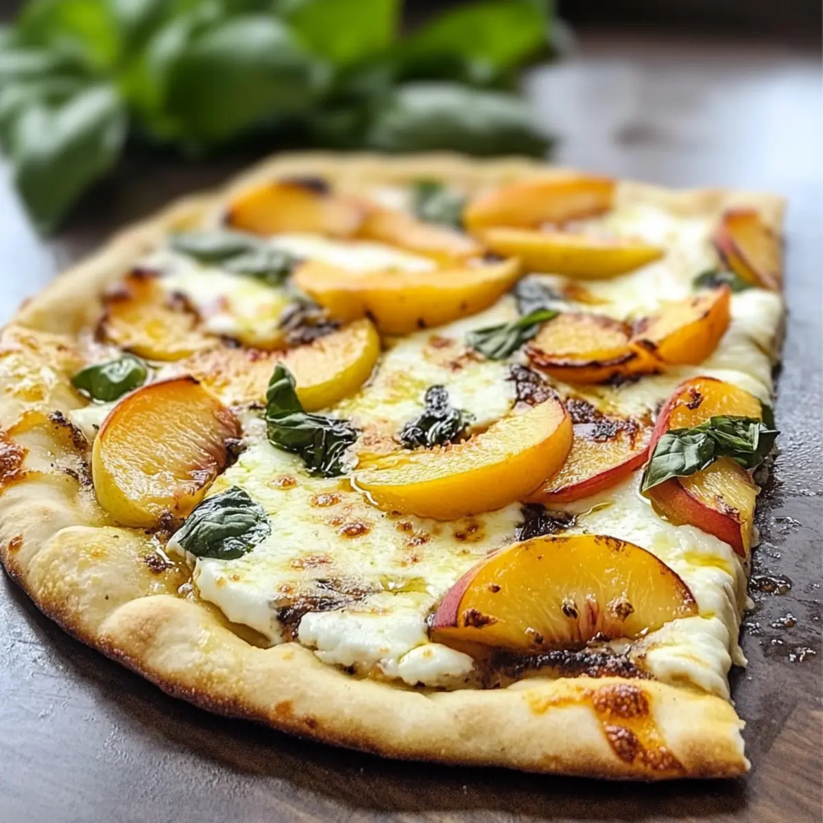 Pfirsich & Basilikum Naan-Brot Pizza für den Sommer