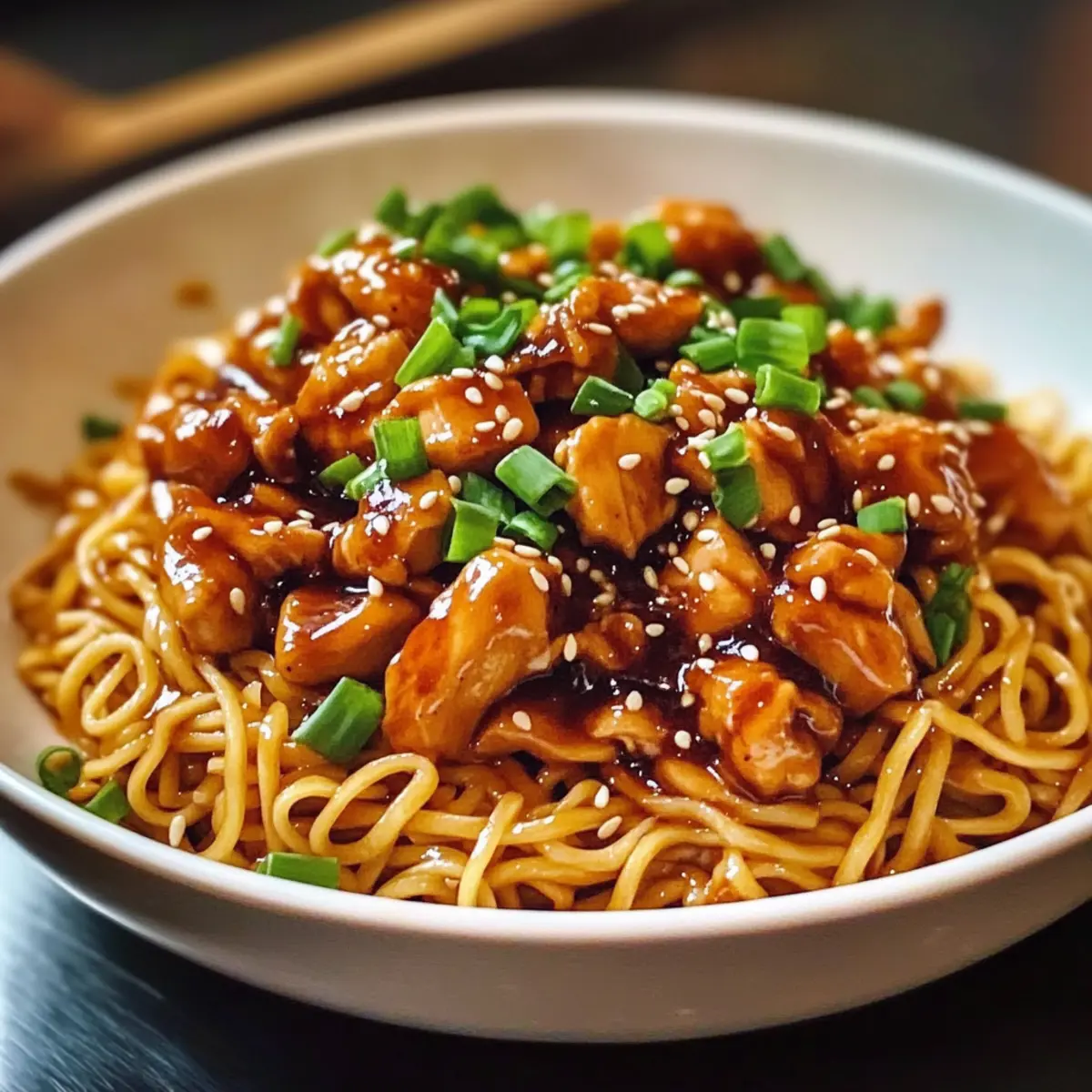 Klebrige Knoblauch-Hühnchen-Nudeln für Schnelle Küche