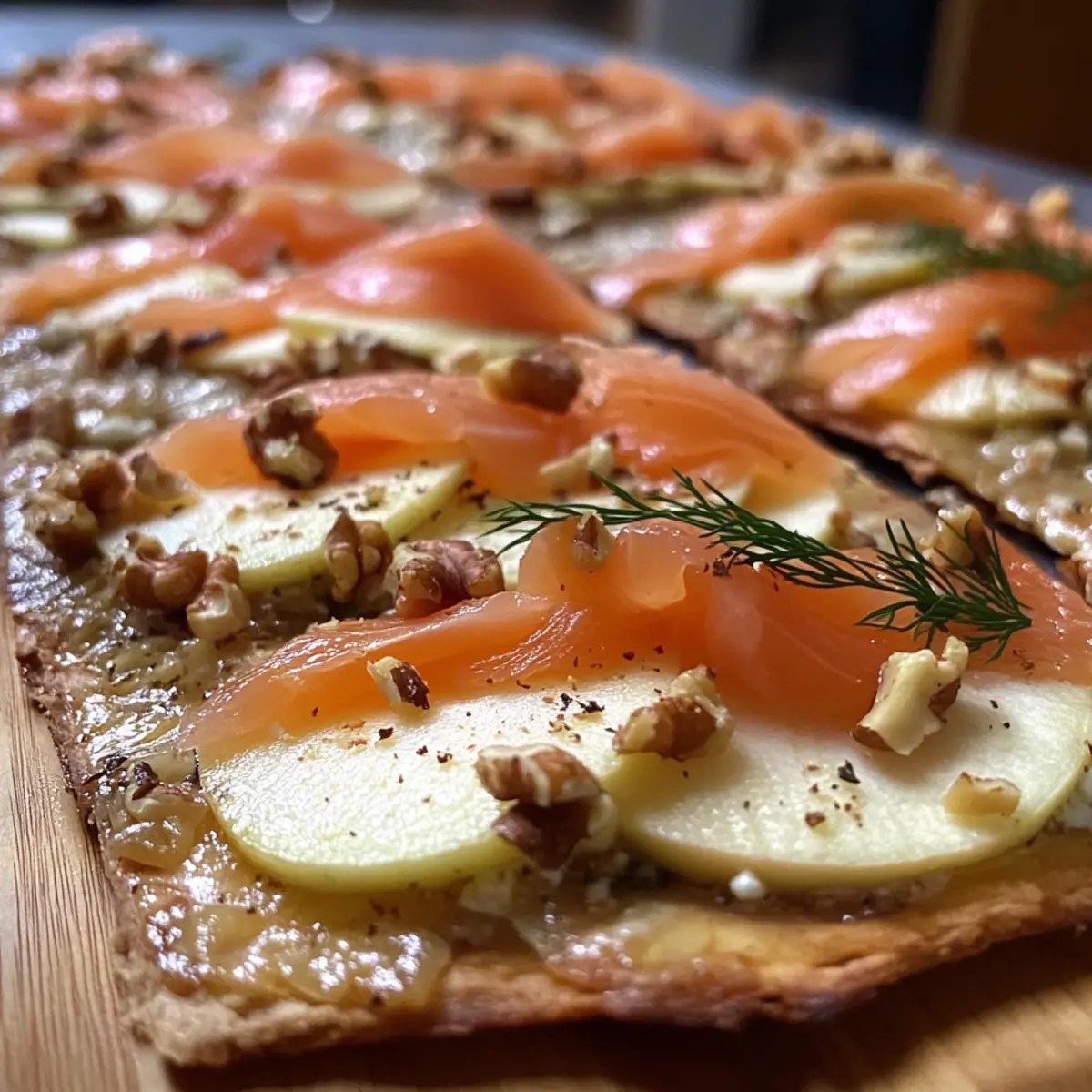 Flammkuchen mit Räucherlachs und Ziegenfrischkäse genießen