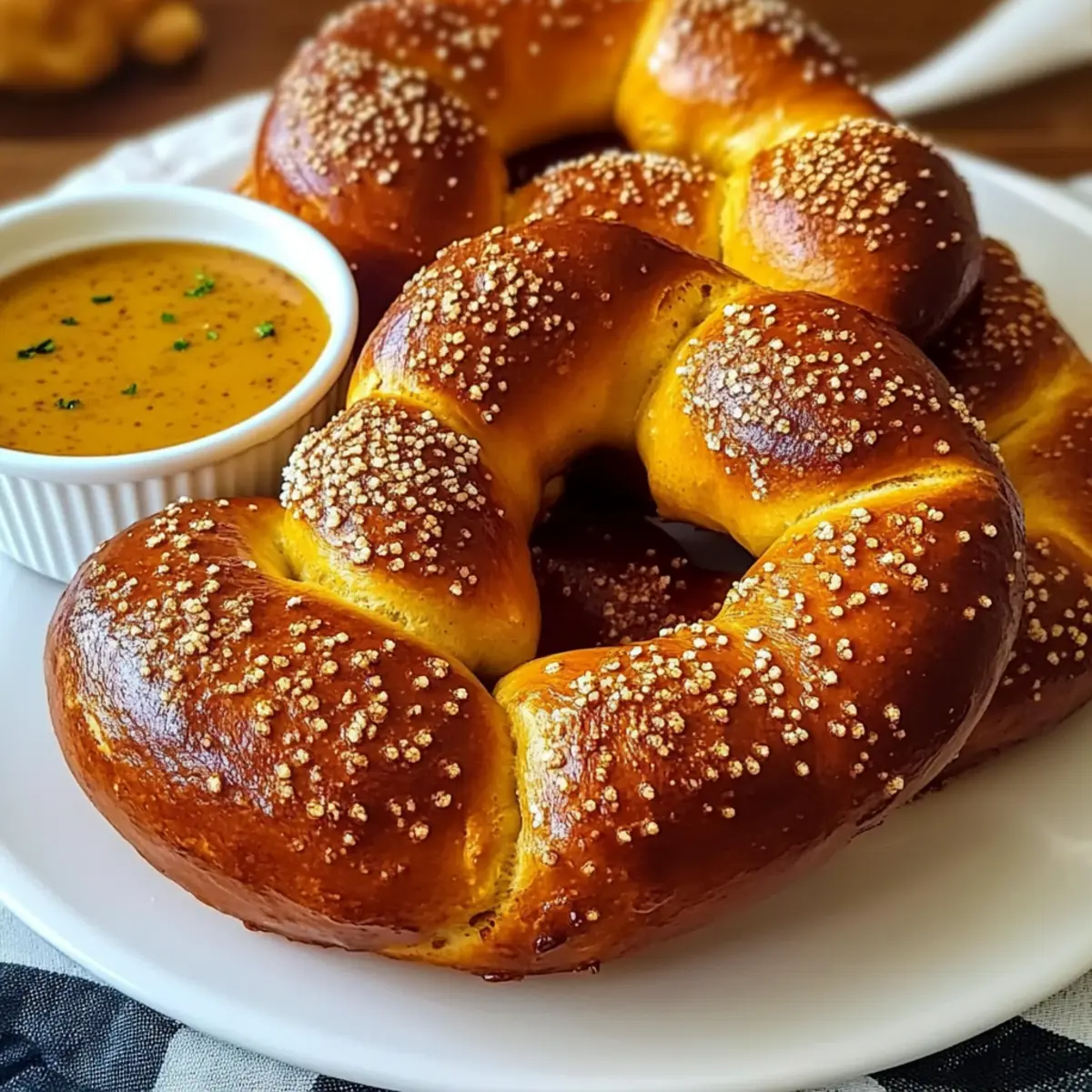 Wärmer Brezel-Snack mit Honig-Senf-Dip