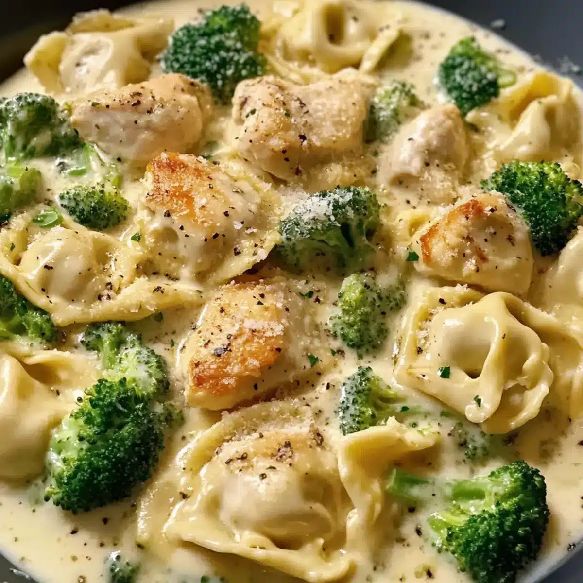 Cremige Knoblauch-Parmesan-Tortellini mit Hühnchen
