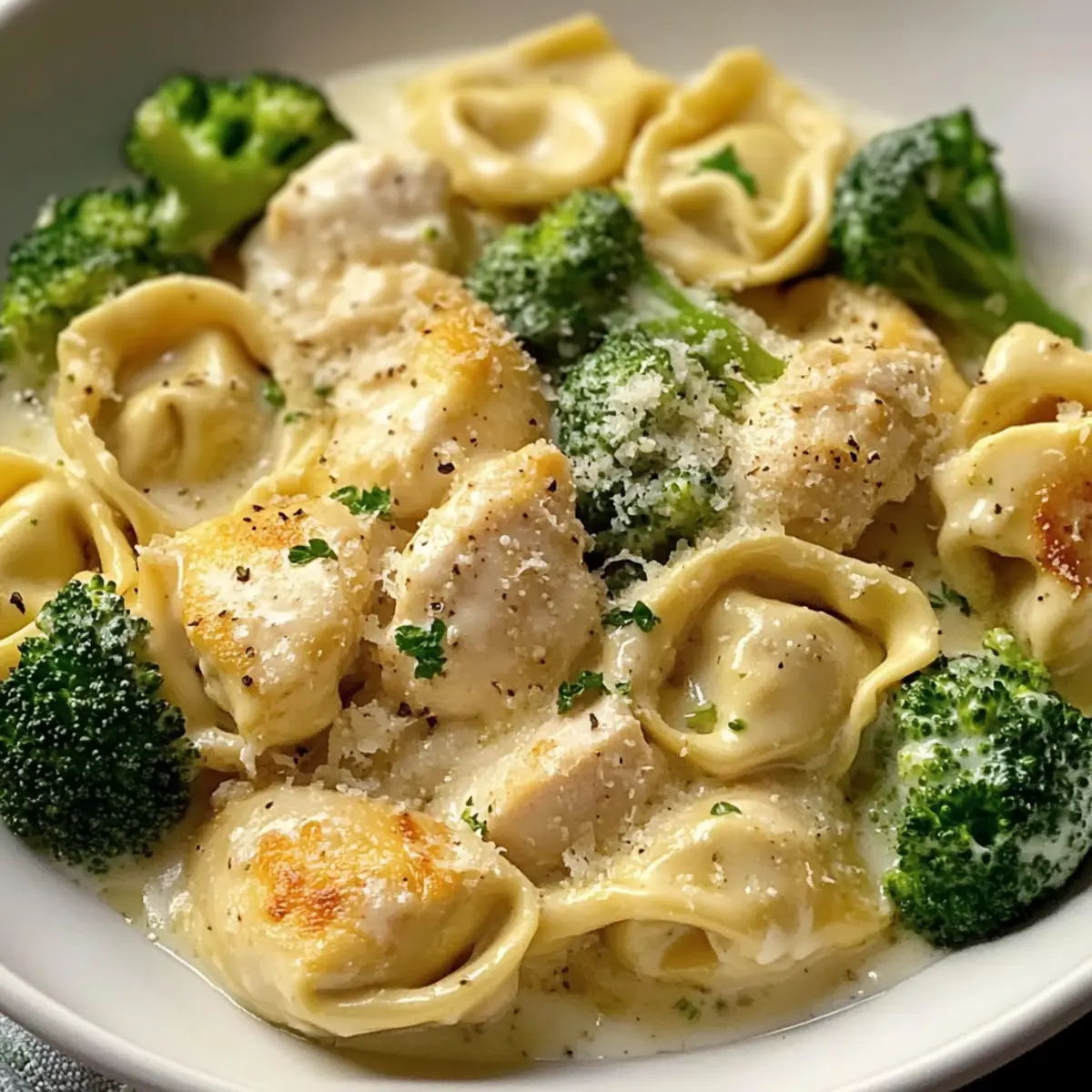Ja, du kannst dieses Rezept leicht anpassen, um es vegetarisch zu machen, indem du das Hühnchen weglässt und stattdessen zusätzliche Brokkoli-Röschen oder Pilze hinzufügst. Bei Allergien achte darauf, frische Zutaten und glutenfreie Tortellini zu verwenden, wenn nötig. Außerdem ist frischer Knoblauch eine bessere Wahl als Knoblauchpulver, um unerwünschte Allergene zu vermeiden.