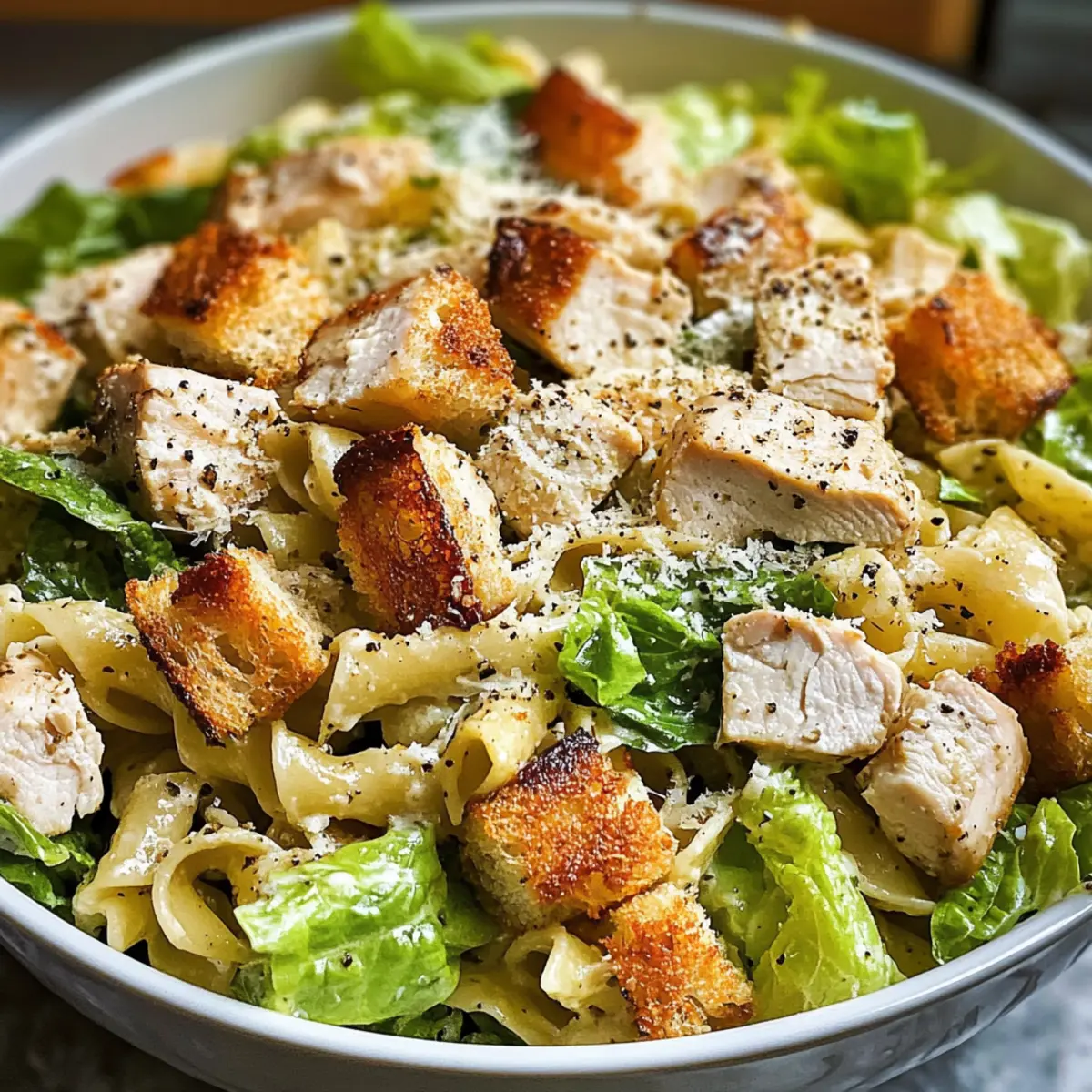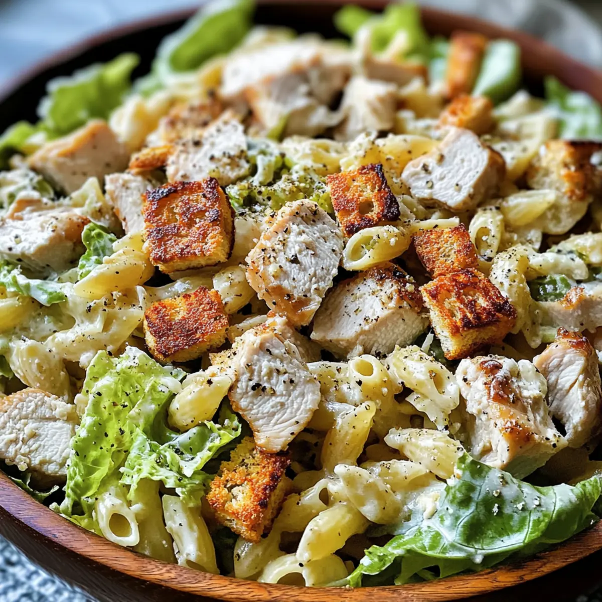 Um den besten Geschmack zu erzielen, achte darauf, frischeste Zutaten zu wählen. Beim Hähnchen solltest du zarte Hähnchenbrust verwenden und gegebenenfalls Rotisserie-Hähnchen für den einfacheren Zugang nehmen. Die Römersalate sollten knackig und grün sein, ohne braune oder schlaffe Blätter. Die Pasta sollte nicht überkocht werden, damit sie al dente bleibt und Textur hat.