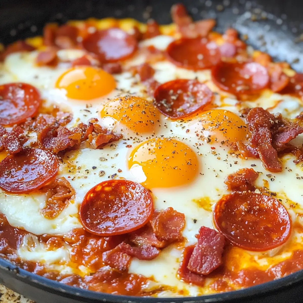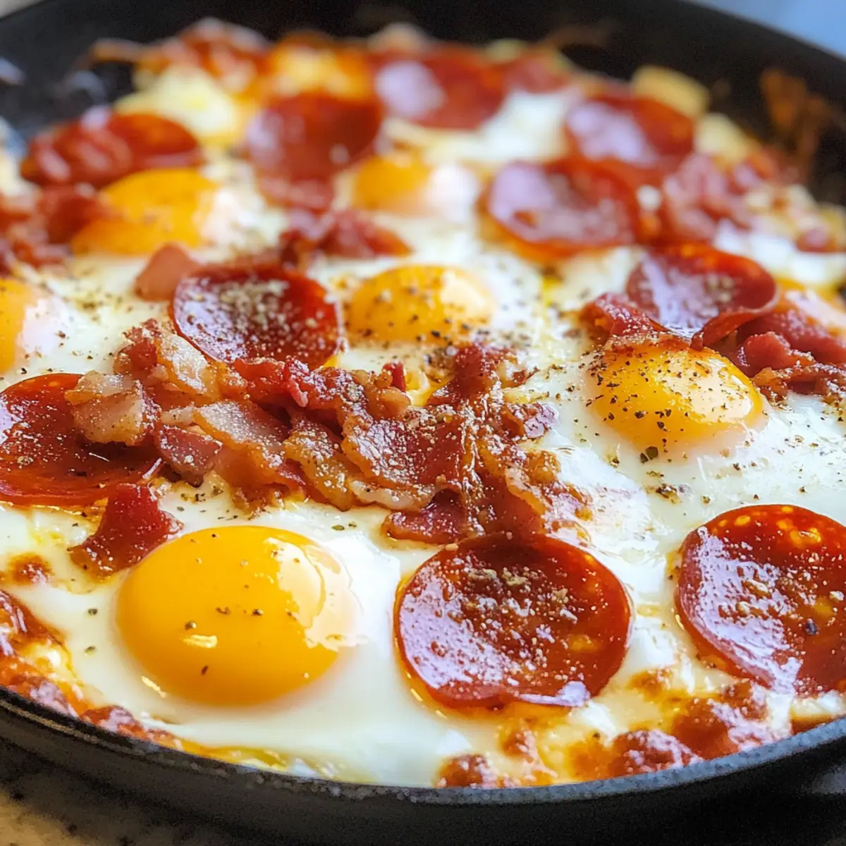 Für beschäftigte Köche sind diese Einfache Keto Pizza Eier eine hervorragende Wahl zur Vorbereitung! Ihr könnt die Marinara-Sauce sowie die Bacon- und Pepperoni-Scheiben bis zu 3 Tage im Voraus zubereiten und in luftdichten Behältern im Kühlschrank aufbewahren. Achte darauf, die Zutaten frisch zu halten, um den Geschmack zu bewahren. Wenn es Zeit zum Kochen ist, schlage einfach die Eier in die heiße Pfanne und füge die vorbereitete Sauce und den Käse hinzu, um das Gericht in unter 10 Minuten abzuschließen. So sparst du wertvolle Zeit an hektischen Morgen und genießt dennoch eine köstliche, hausgemachte Mahlzeit, die nur so vor Geschmack strotzt!