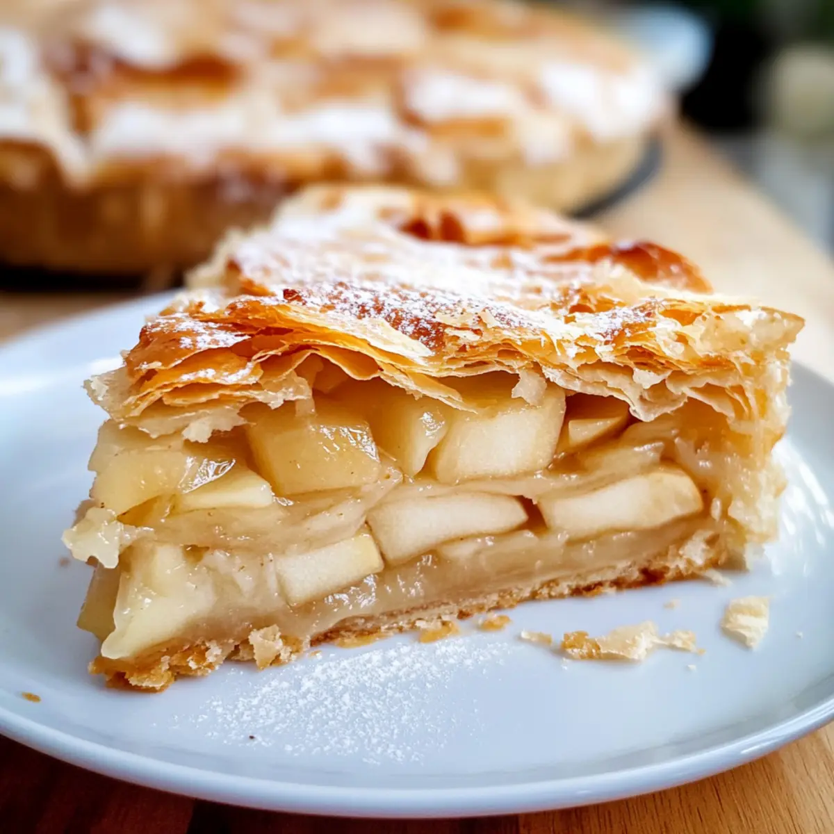 Verteile die vorbereitete Apfelmischung gleichmäßig auf den geschichteten Teigblättern in der Form. Achte darauf, die Mischung gut zu verteilen, damit jeder Bissen der Einfache Strudeltorte voll mit der köstlichenfüllung ist. Drücke die Füllung leicht an, um Platz für die restlichen Teigblätter zu schaffen.