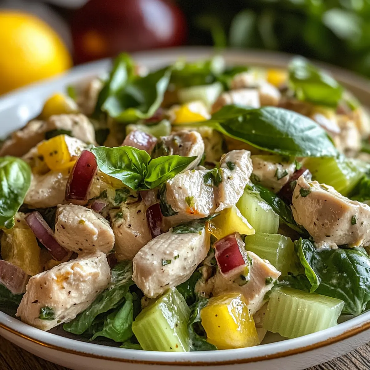 Gesund und Lecker: Mit frischem Hühnchen, aromatischem Basilikum und spritziger Zitrone ist dieser Salat nicht nur köstlich, sondern auch nährstoffreich.