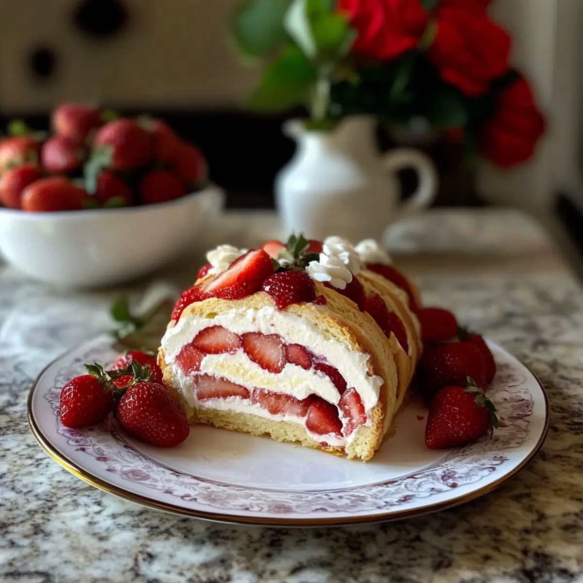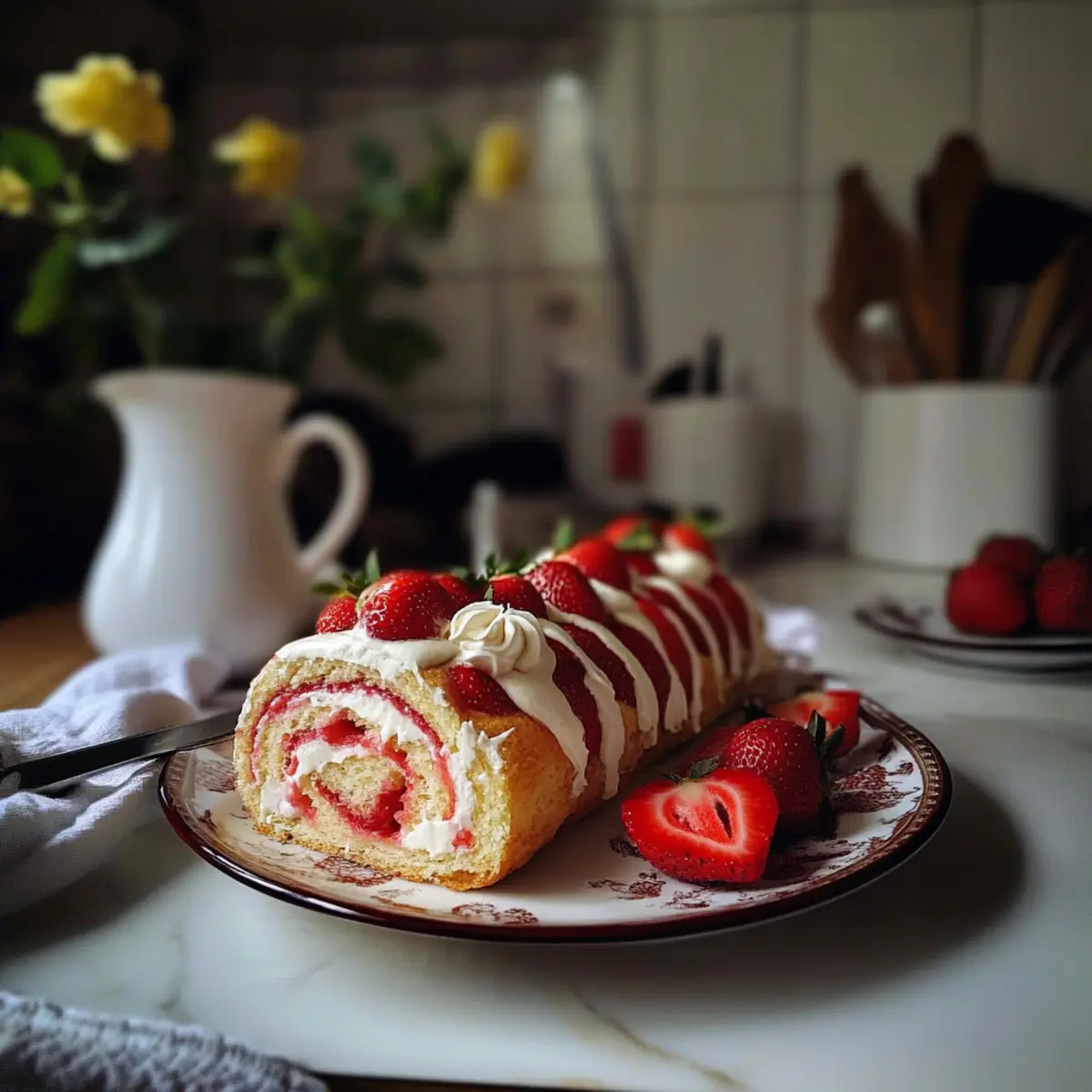 Erdbeer-Biskuitrolle mit cremiger Füllung