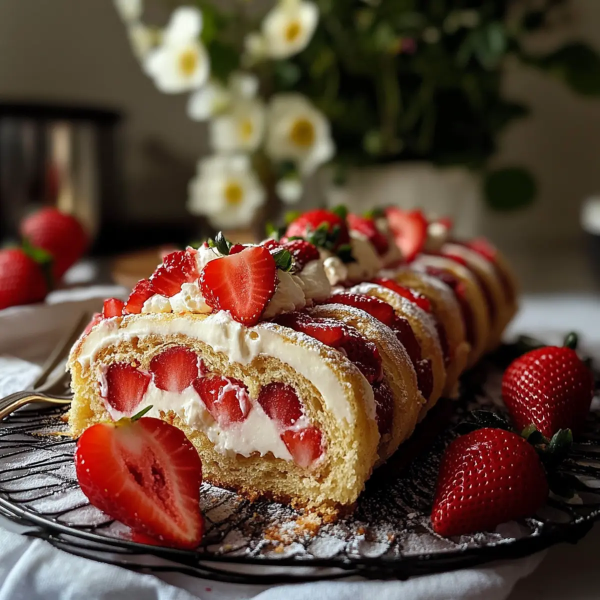 Die Erdbeer-Biskuitrolle ist eine wahre Freude für alle Sinne – leicht, frisch und wunderschön!