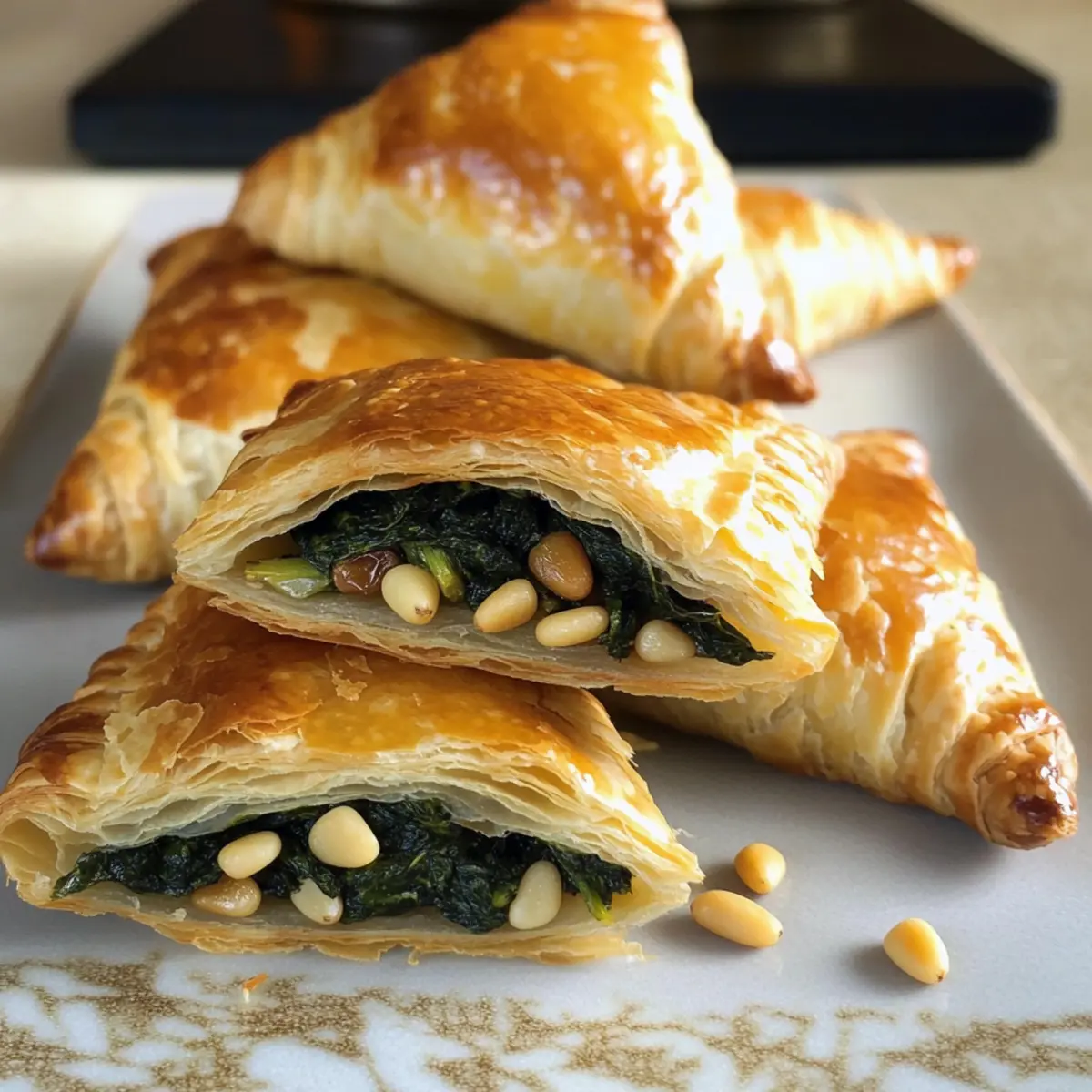 Gefüllte Blätterteigtaschen mit Spinat und Pinienkernen