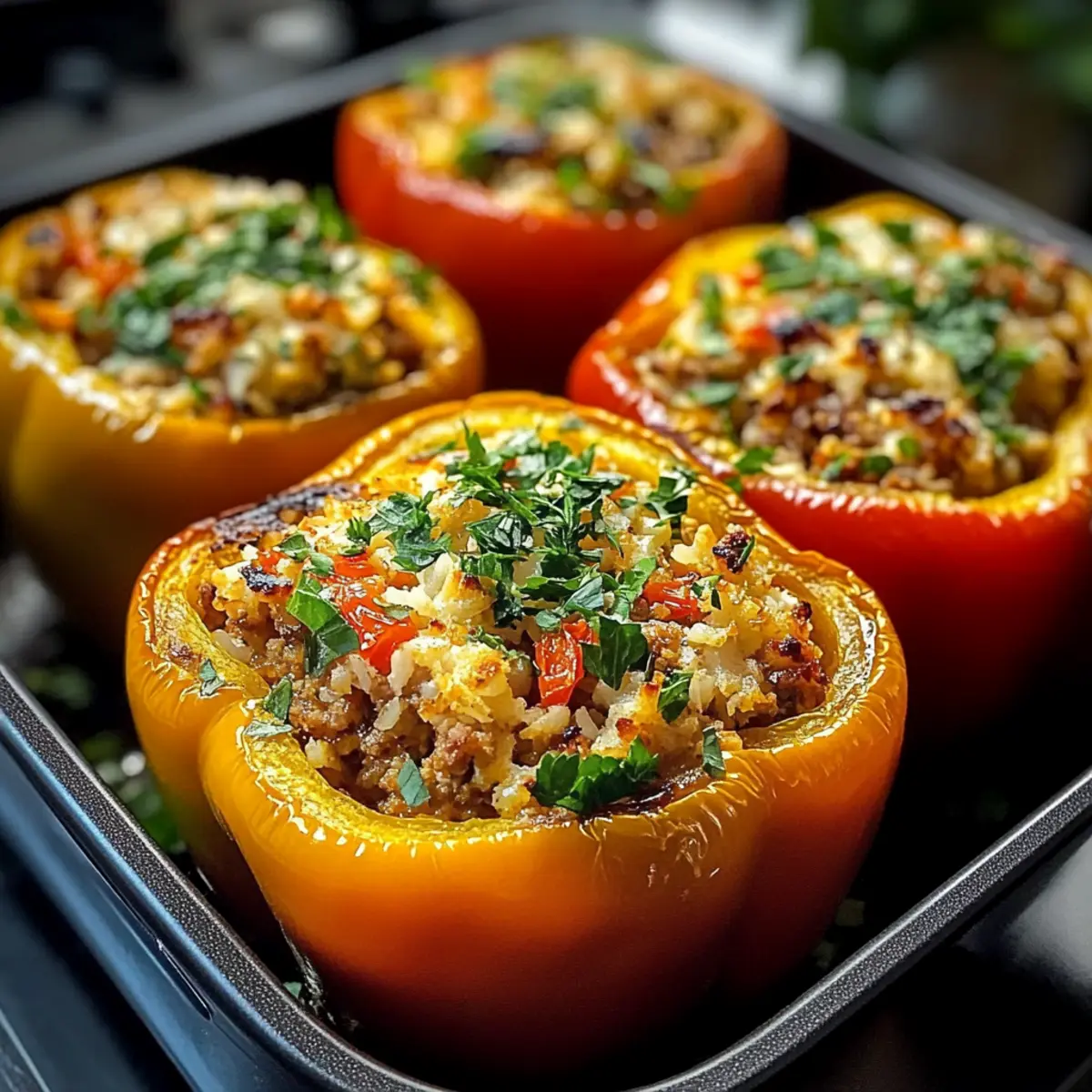 Schärfer: Fügen Sie gehackte Jalapeños oder einen Teelöffel Cayennepfeffer hinzu, um den gefüllten Paprika eine gewisse Schärfe zu verleihen.