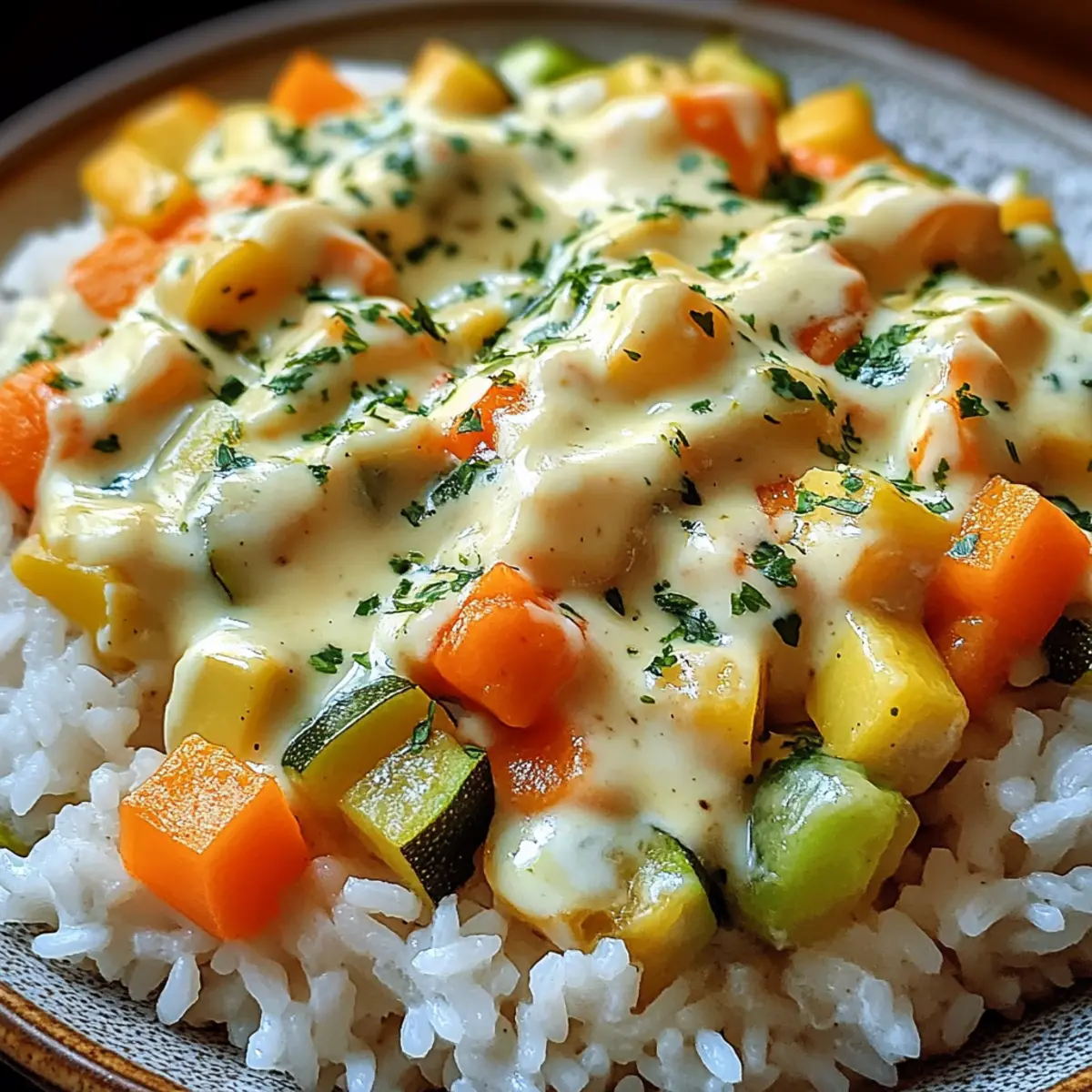 Gemüse Reis Frischkäse Sauce für gesunde Genussmomente