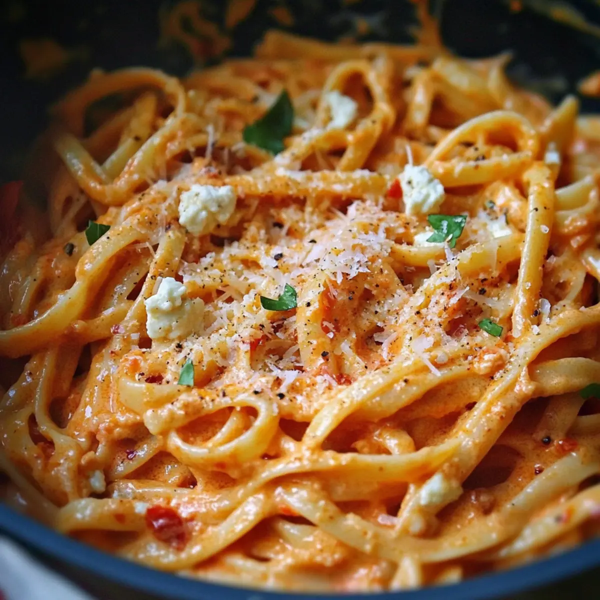 Lass uns gemeinsam kochen und verwöhne deine Liebsten mit dieser köstlichen Geröstete rote Paprika & Ziegenkäse Alfredo!