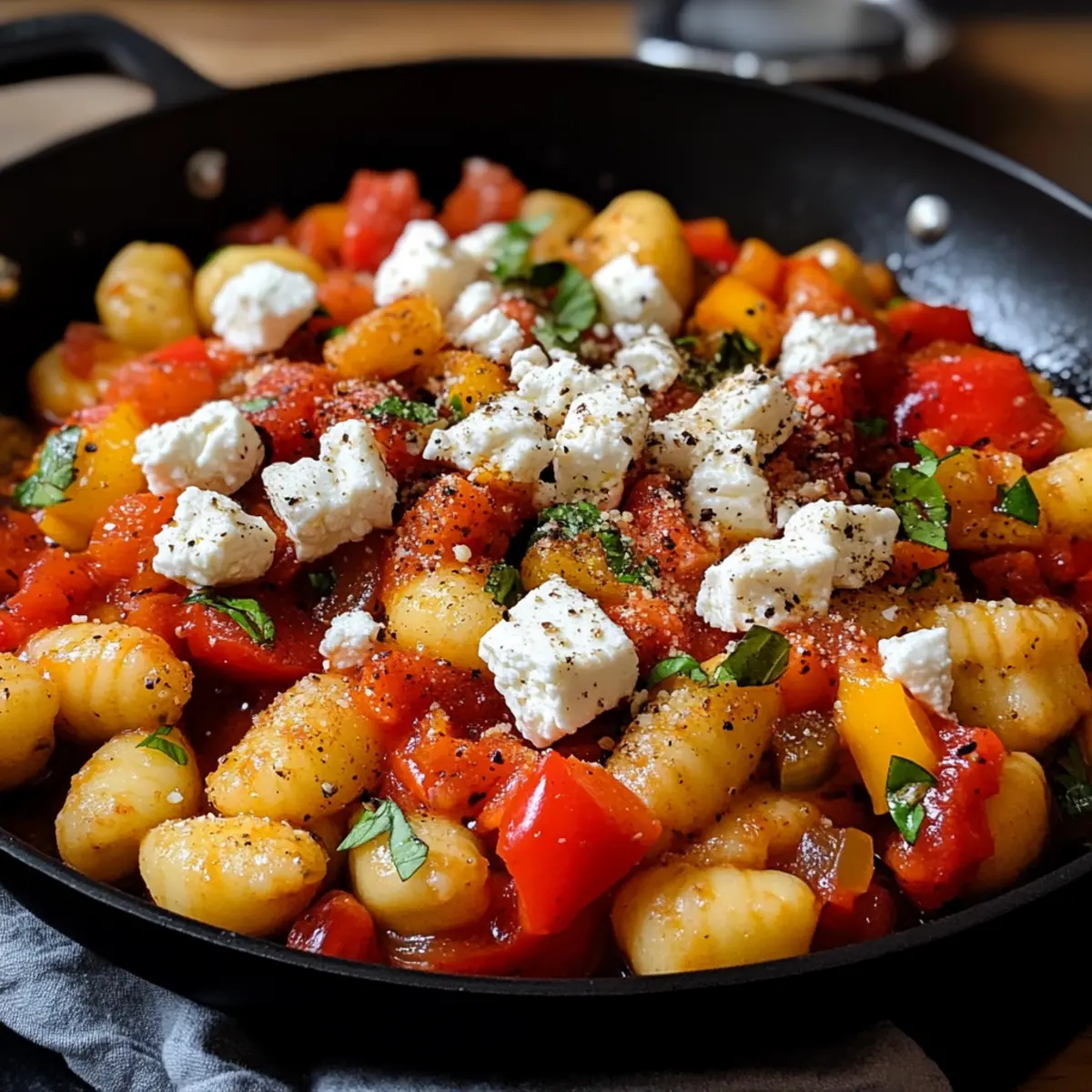 Cremige Konsistenz: Für eine noch cremigere Sauce können Sie etwas Sahne oder griechischen Joghurt unterrühren. Das bringt eine weitere Dimension der Geschmackstiefe in Ihre Gnocchi Gemüse Pfanne mit Feta!