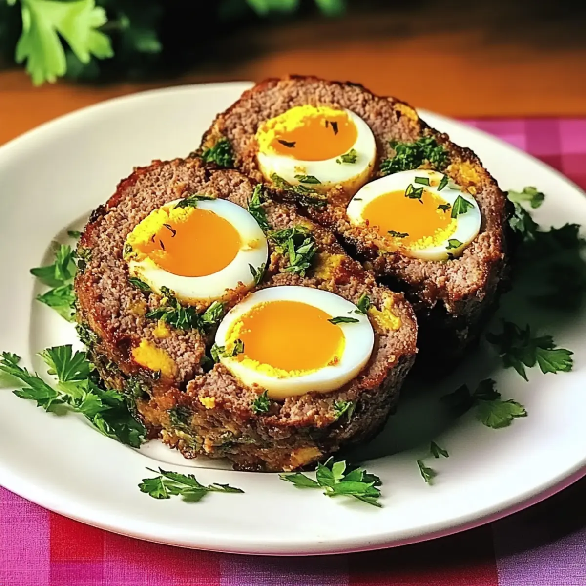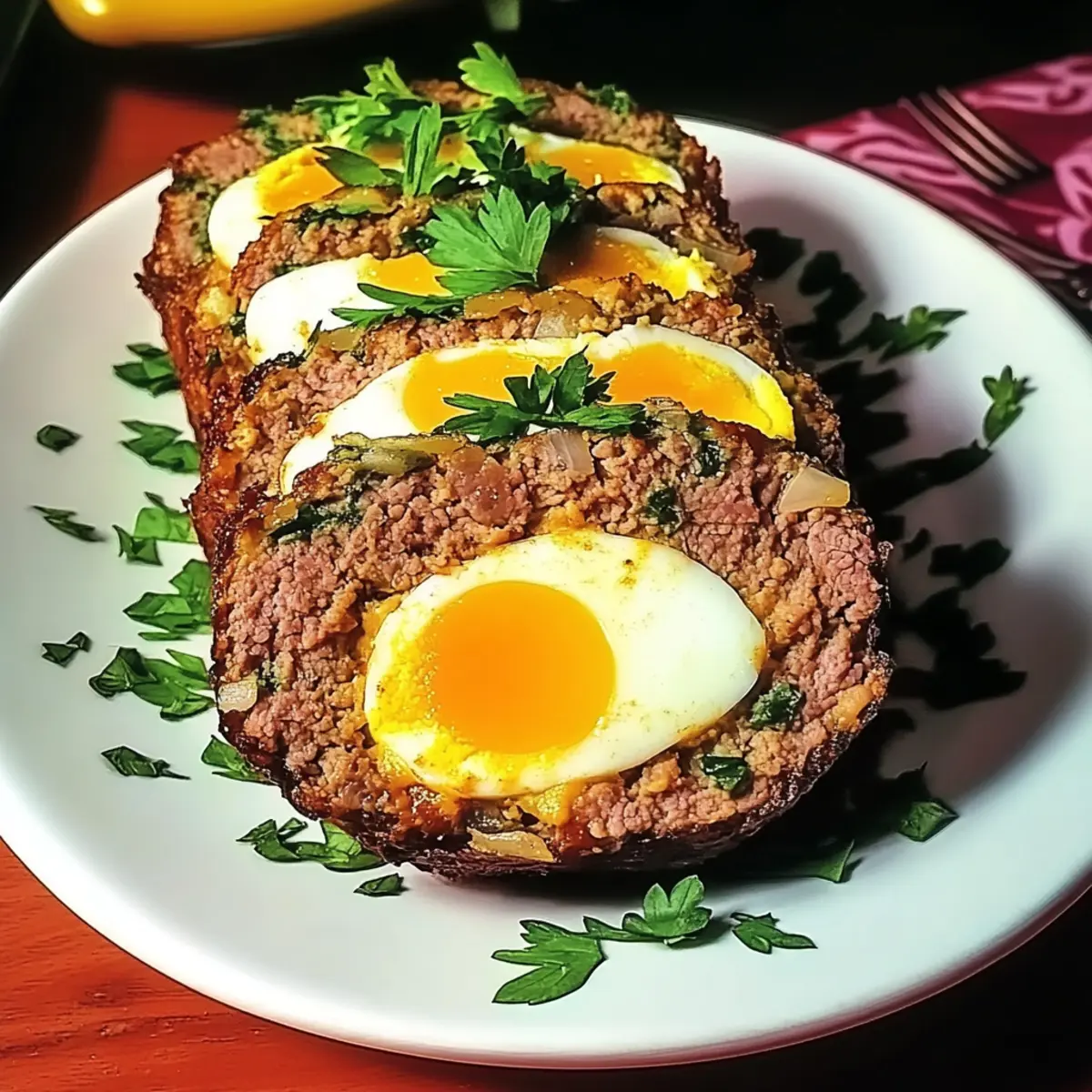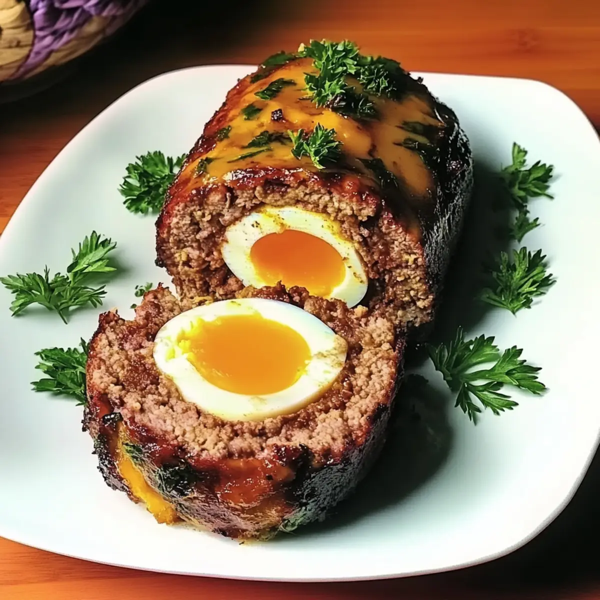 Die Kombination von zartem Hackbraten und einem überraschenden Ei verleiht dem Essen eine herzhafte Tiefe und Gemütlichkeit.