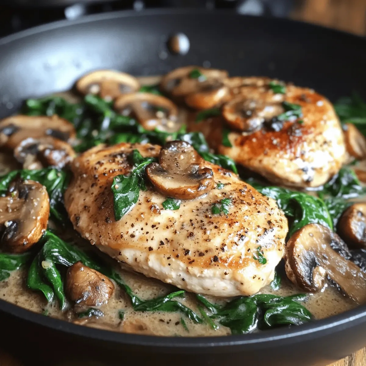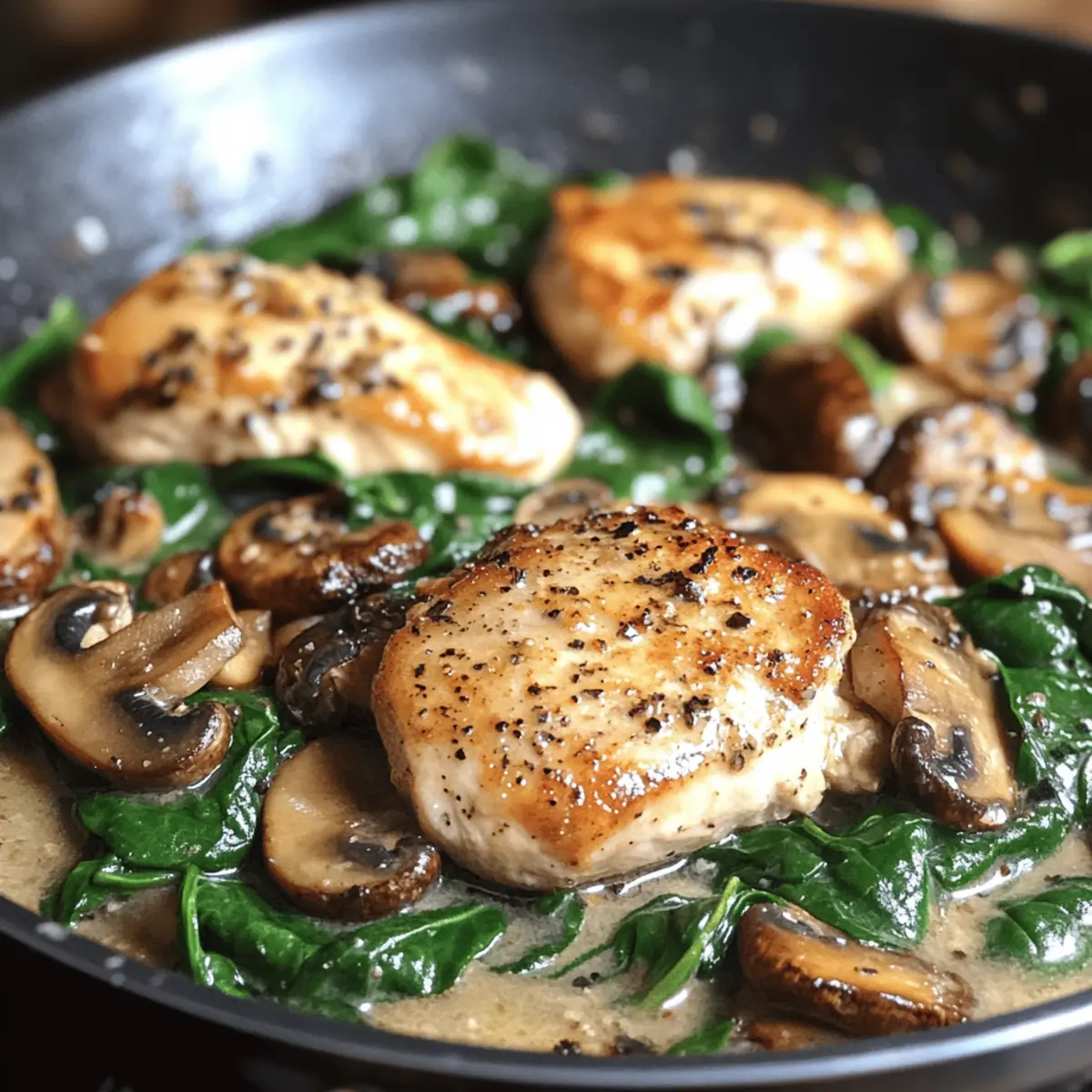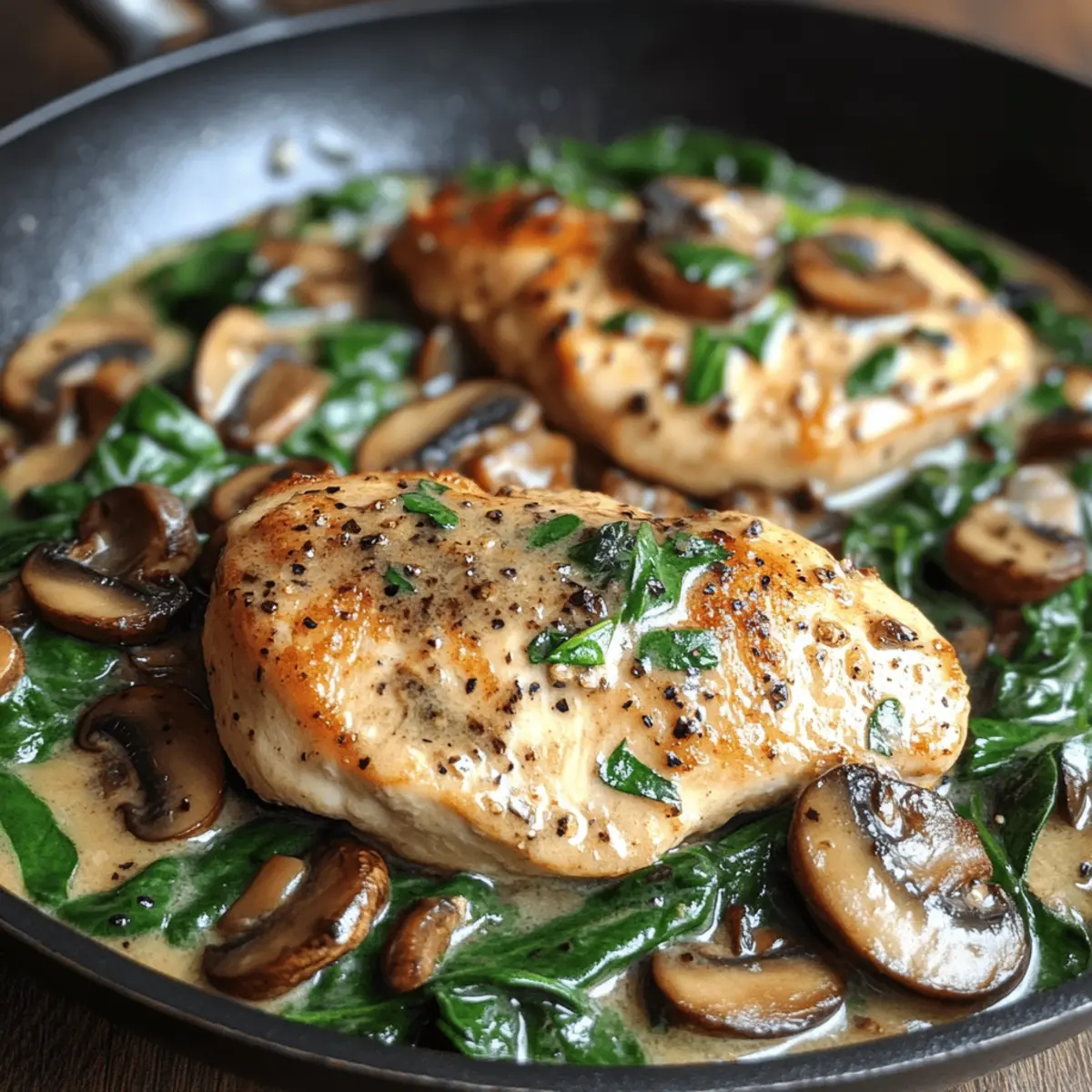Reichhaltiger Geschmack: Die Kombination aus Hähnchen, Spinat und Champignons in einer cremigen Soße sorgt für ein unvergleichliches Geschmackserlebnis, das gesund und sättigend ist.