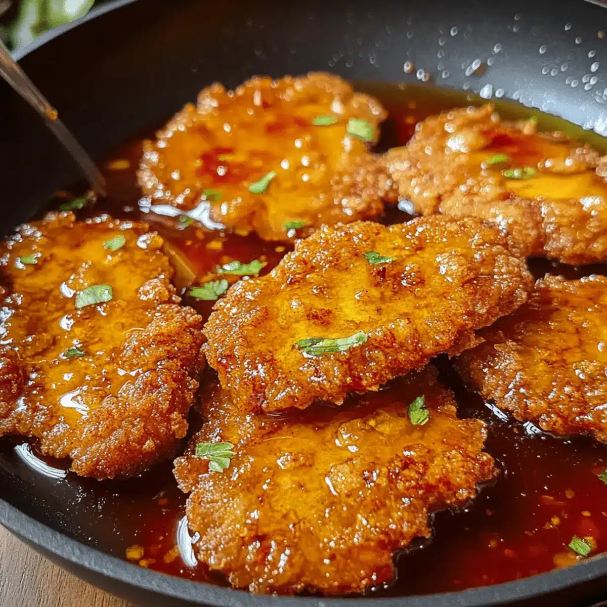 Verteile die heiße Honigsauce gleichmäßig über die knusprigen Hähnchenbrustfilets. Du kannst zusätzlich rote Pfefferflocken oder frische Kräuter nach Geschmack darüber streuen. Die Kombination aus süß und scharf verleiht dem Heißer Honig Hähnchenbrustfilets Rezept den letzten Schliff und sorgt für ein unvergessliches Geschmackserlebnis.