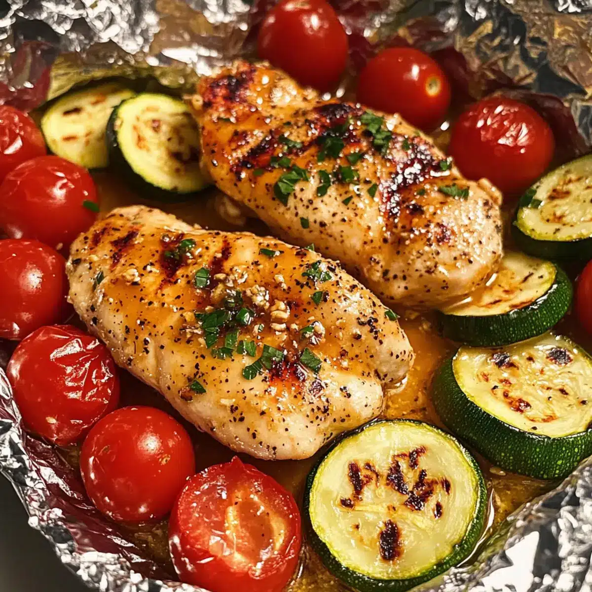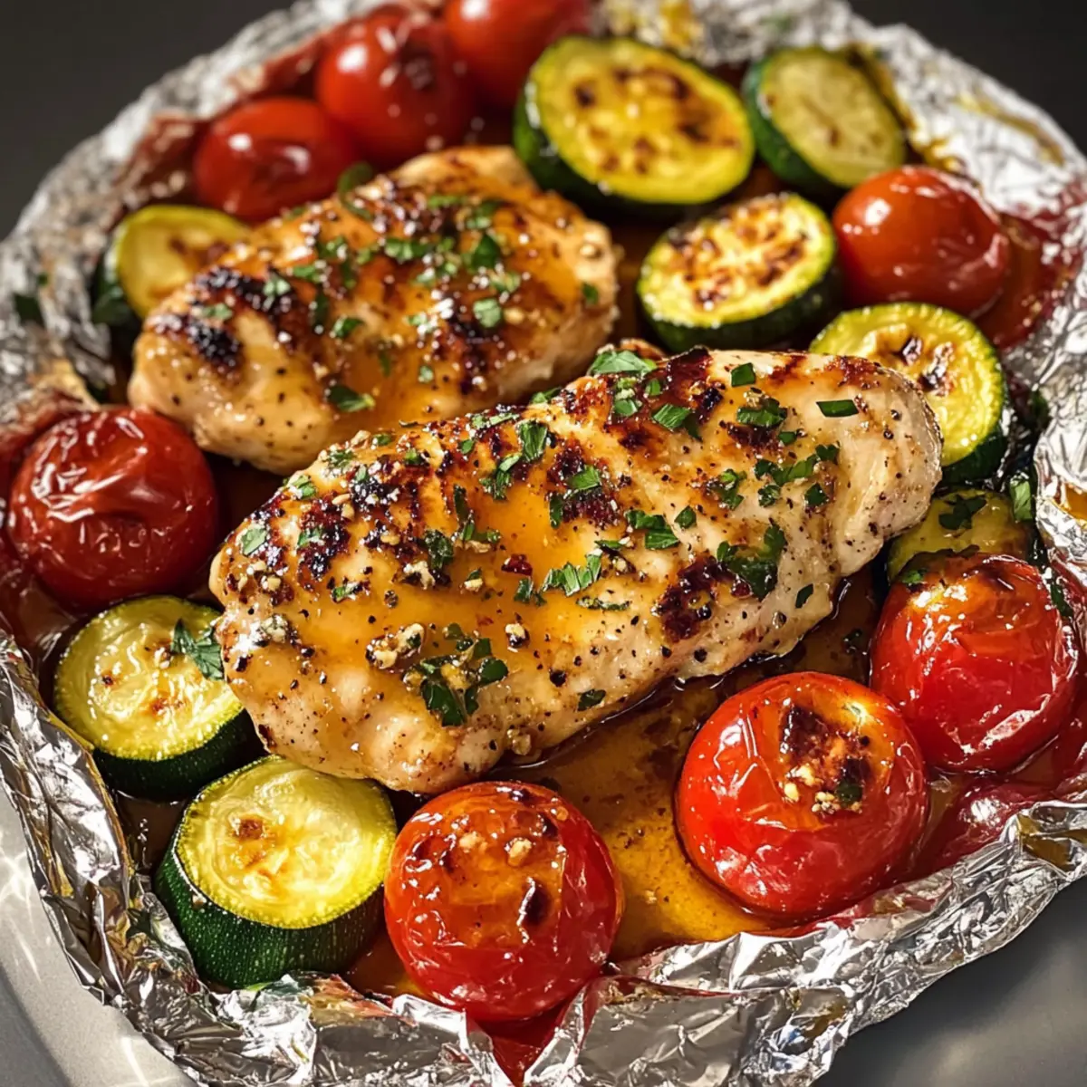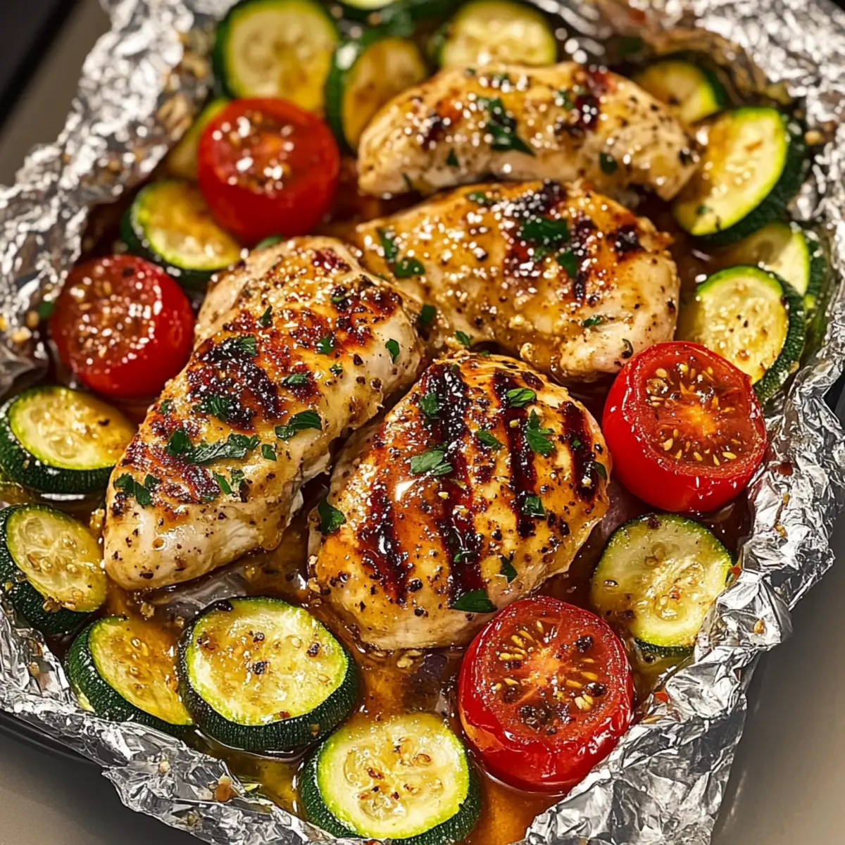 Perfekt für jeden Anlass: Ob für ein schnelles Wochendinner oder ein geselliges Treffen – das Honig-Senf-Hähnchen in Tomaten-Zucchini-Päckchen wird alle begeistern!