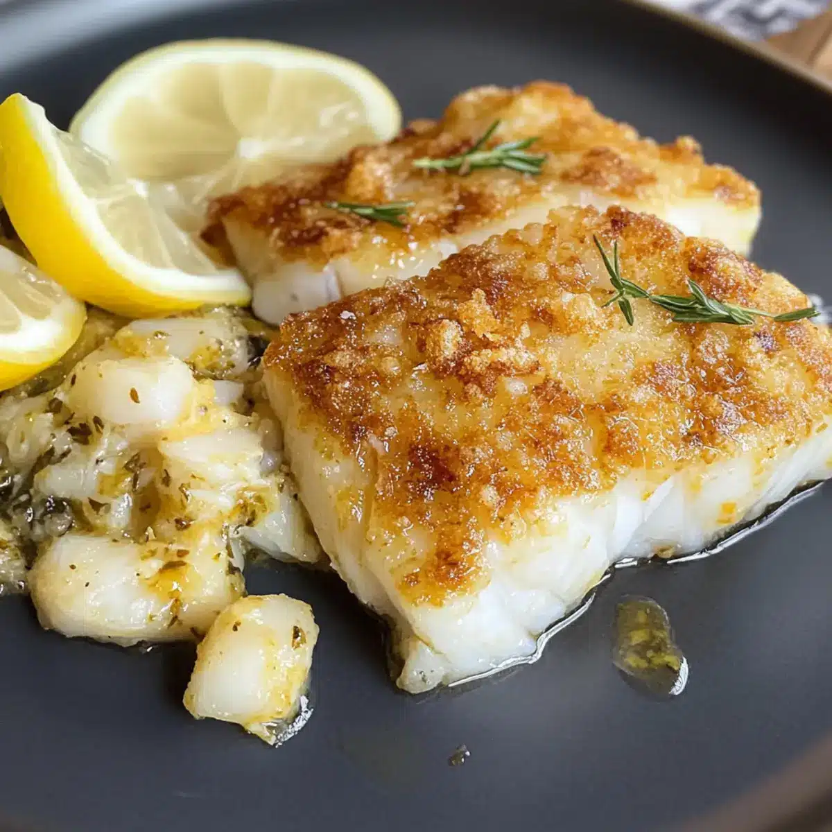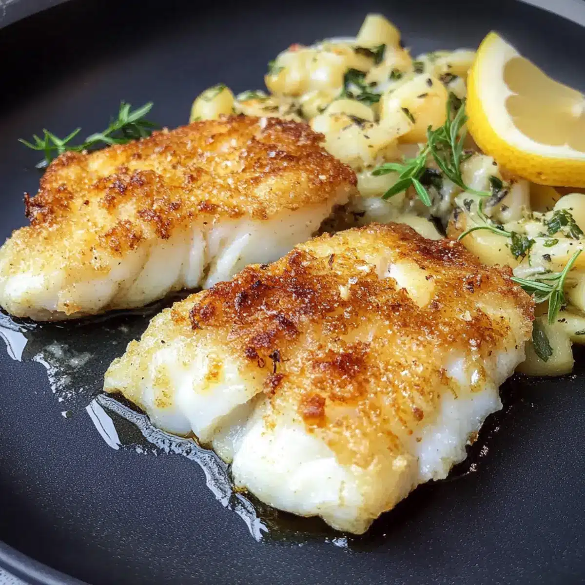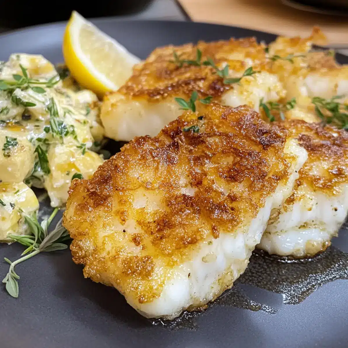 - Serviere deinen knusprigen Kabeljau sofort zusammen mit Beilagen deiner Wahl.
