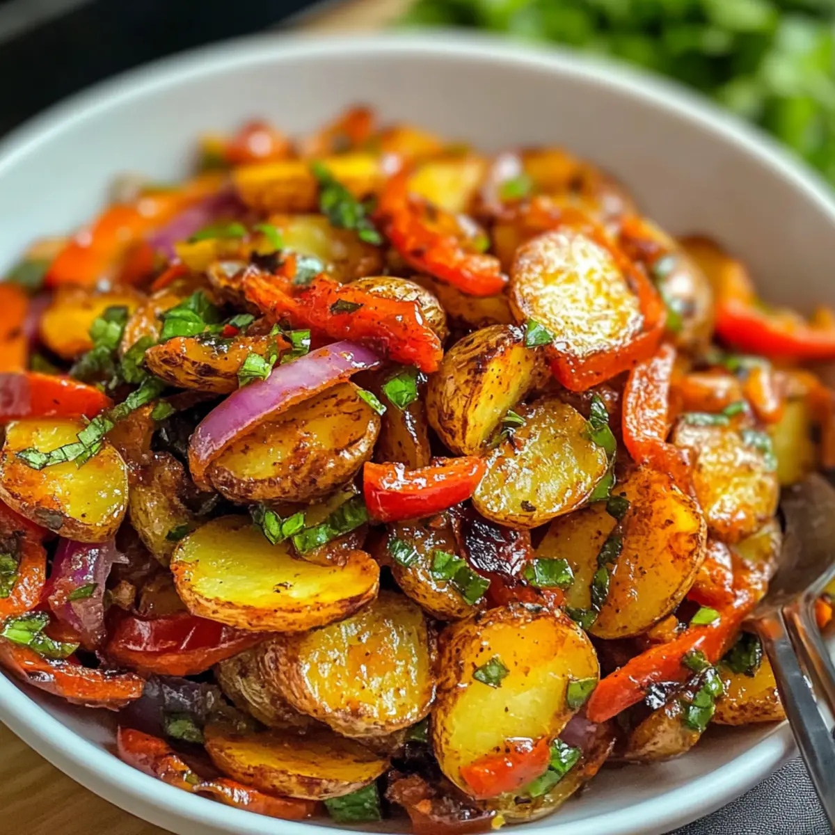 Als ich kürzlich auf einem Sommerfest mit Freunden war, offenbarte sich mir das Geheimnis eines frischen und knusprigen Kartoffelsalats mit Paprika und Zwiebeln. Jeder Biss von diesem Salat verbindet die knusprigen, goldbraun gerösteten Kartoffeln mit der knackigen Süße der Paprika und der herzhaften Schärfe der Zwiebeln. Das Beste an diesem Rezept? Es ist nicht nur vegan und laktosefrei, sondern auch in weniger als 30 Minuten zubereitet! Perfekt für spontane Grillabende oder entspannte Picknicks im Freien. Wenn du auf der Suche nach einer neuen, aufregenden Beilage bist, könnte dieser Kartoffelsalat dein nächster Hit werden. Bist du bereit, diese köstliche Kombination auszuprobieren?